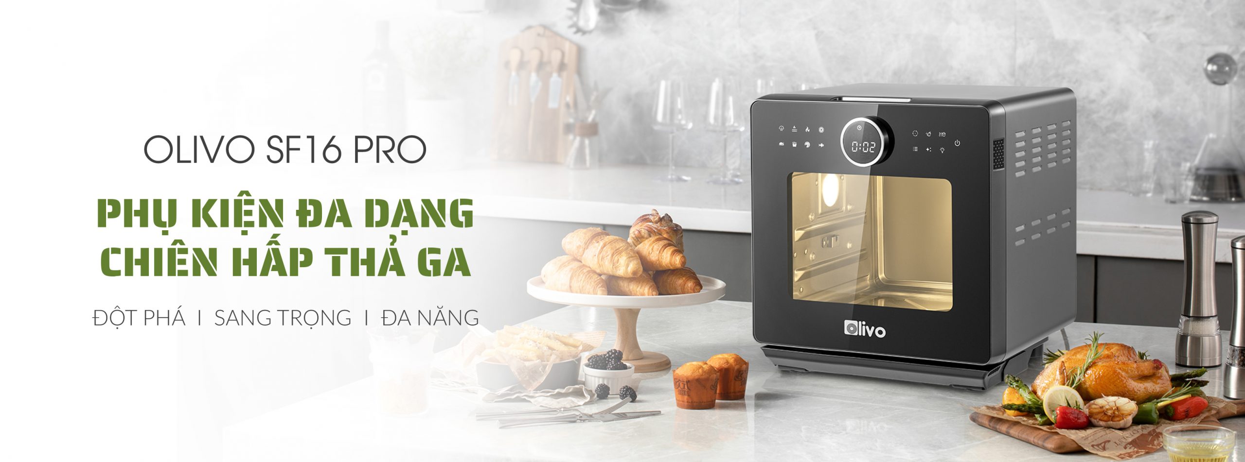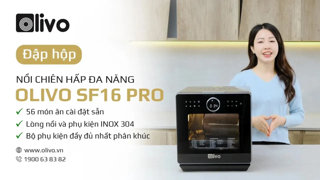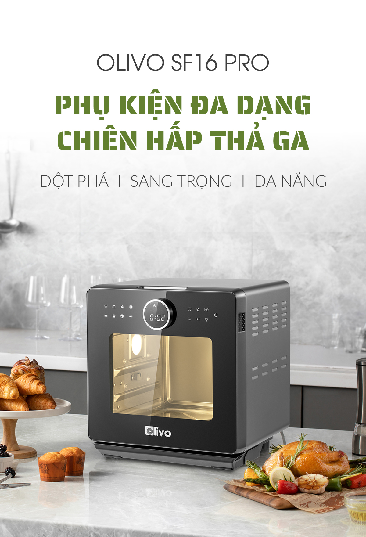 Nồi Chiên Hấp Đa Năng OLIVO SF1600 – Phiên bản Đặc Biệt cao cấp nhất, Màn hình OLED hiện đại, 70 chế độ cài sẵn, Dung tích 16L, Vệ sinh dễ dàng