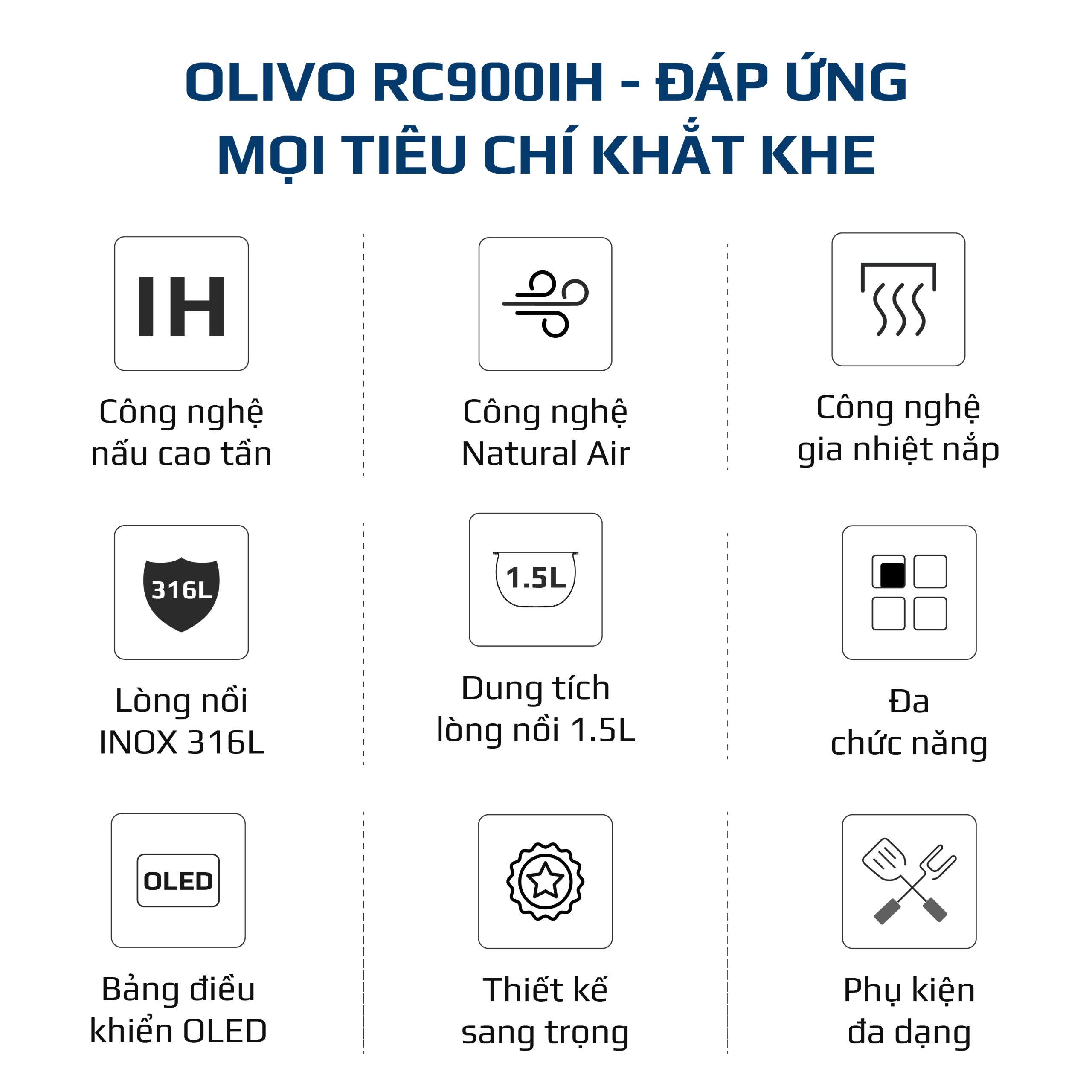 Nồi Cơm Điện Cao Tần OLIVO RC900IH – Lòng Nồi INOX 316L Cao Cấp, Công Nghệ Cao Tần Giữ Trọn Dinh Dưỡng, Bảng Điều Khiển Oled Sống Động, Hiện Đại, Cao Cấp