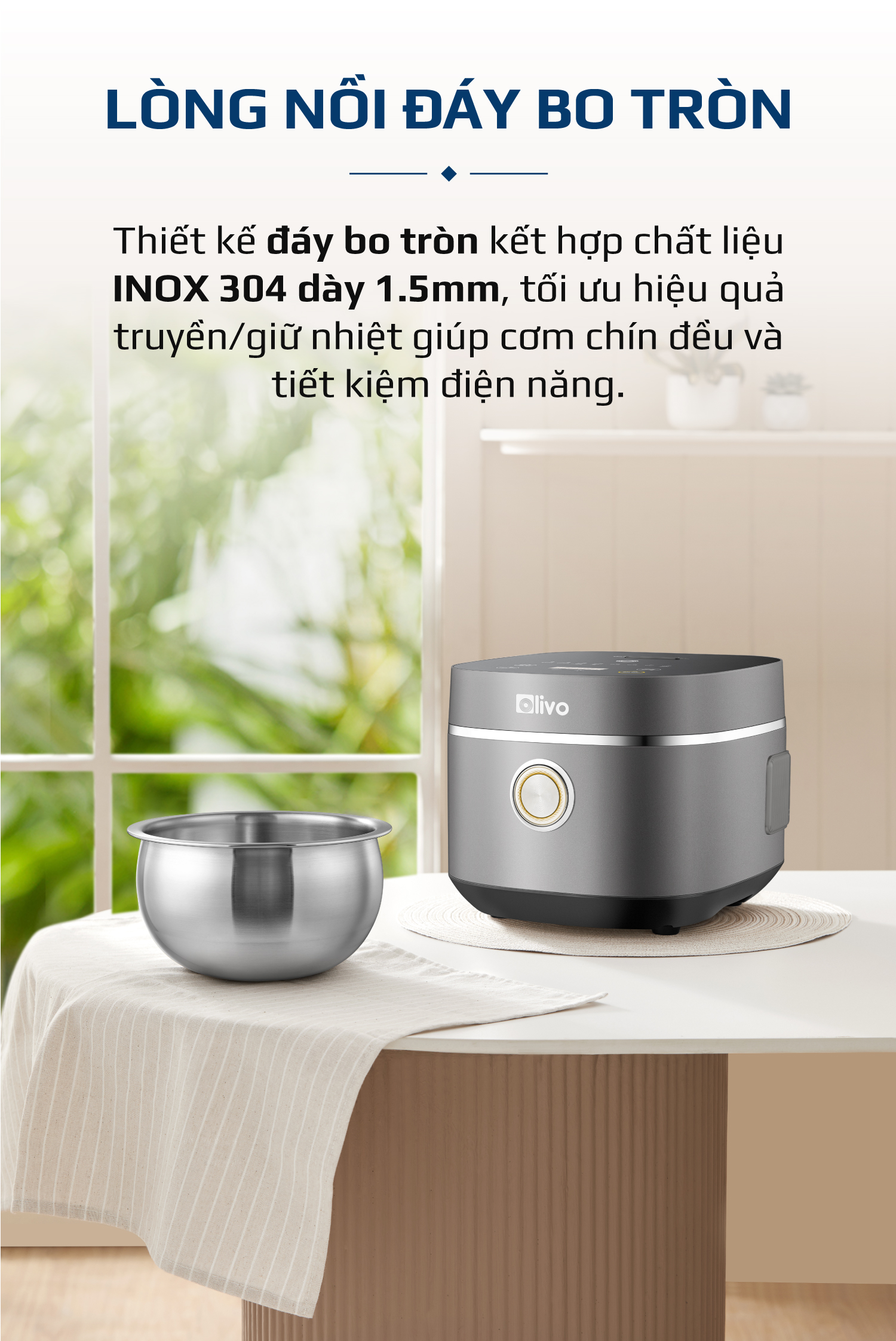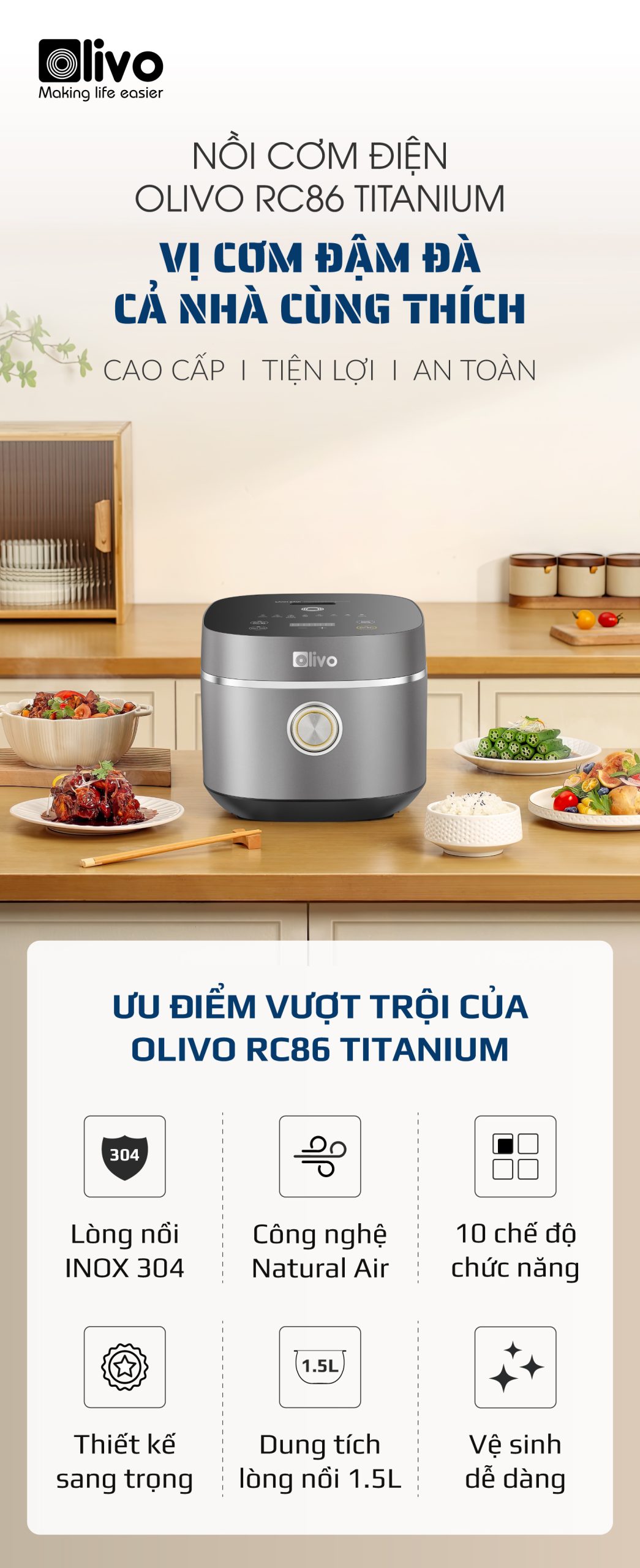- Hiểu được nhu cầu của người nội trợ hiện đại trong việc nấu nướng, OLIVO cho ra mắt nồi cơm điện lòng nồi INOX 304 cao cấp OLIVO RC86 – sự kết hợp hoàn hảo giữa công nghệ hiện đại, thiết kế sang trọng và chất lượng vượt trội.