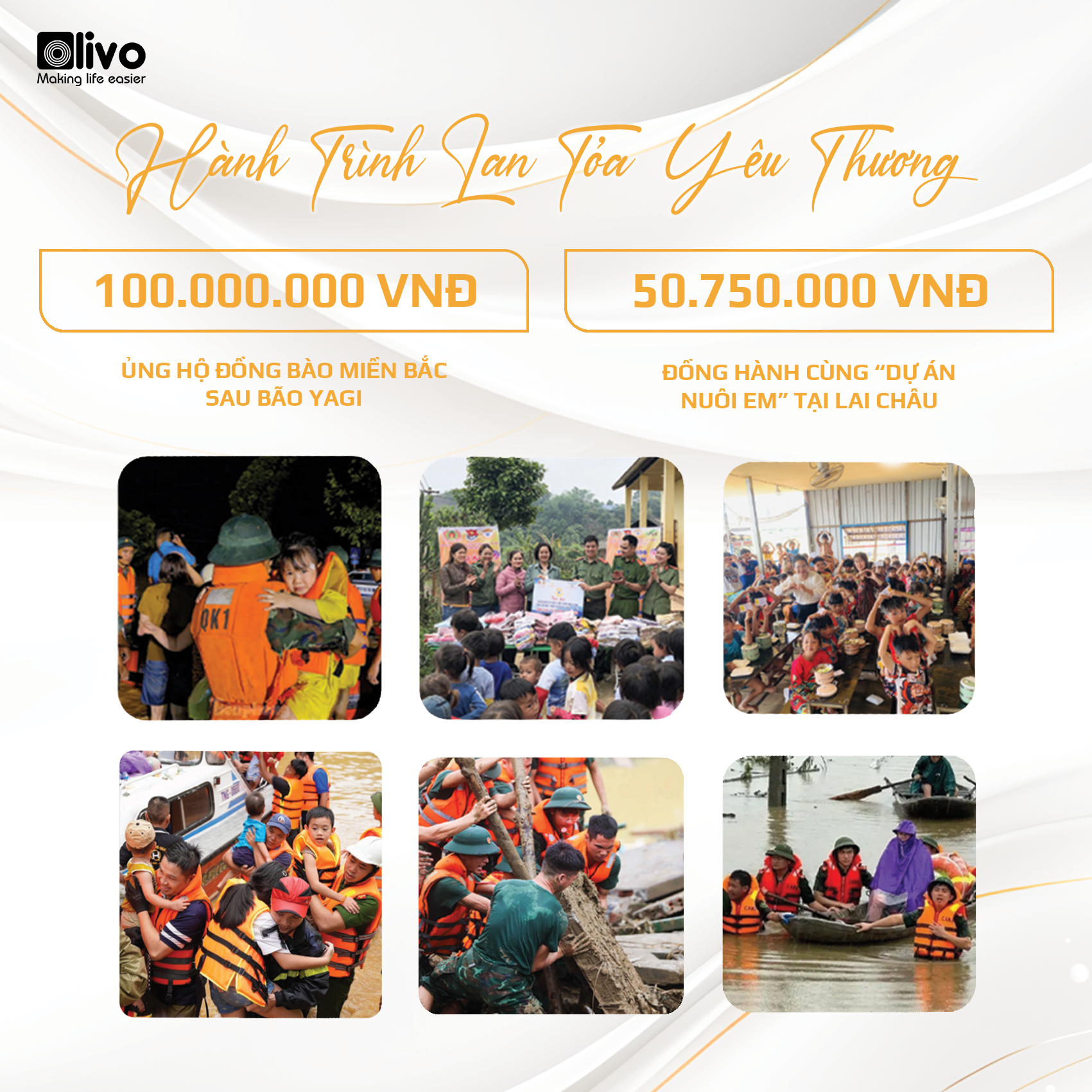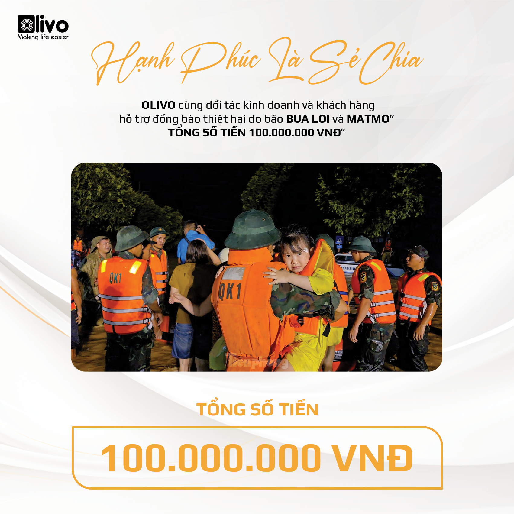 Khoản đóng góp này thể hiện cam kết của OLIVO trong hành trình lan tỏa yêu thương, sẻ chia khó khăn và đồng hành cùng người dân trên khắp cả nước vượt qua thử thách thiên tai.