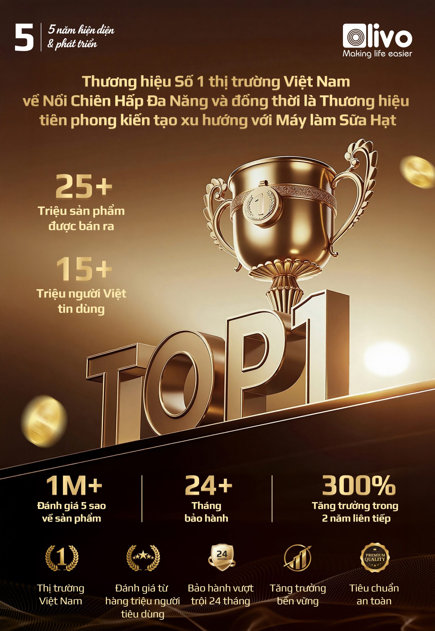 Olivo Việt Nam cam kết tiếp tục giữ vững giá trị cốt lõi về chất lượng, uy tín, trách nhiệm, hướng đến mục tiêu trở thành thương hiệu gia dụng được tin chọn hàng đầu, đồng hành cùng người Việt trong từng không gian sống.