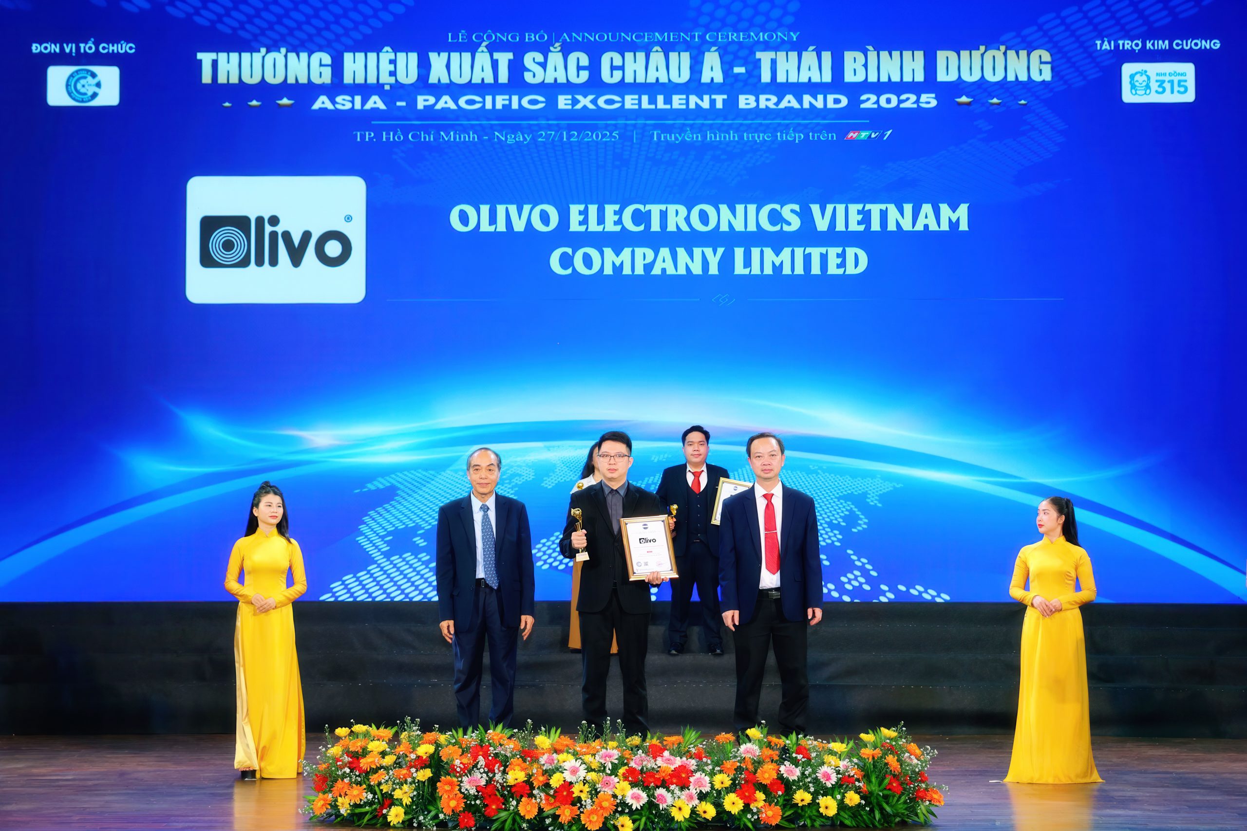 Ngày 27/12/2025 vừa qua, Công ty TNHH Olivo Electronics Việt Nam vinh dự được xướng tên trong Top 10 Thương Hiệu Xuất Sắc Châu Á Thái Bình Dương 2025 (Asia Pacific Excellent Brand 2025) giải thưởng uy tín do Viện Nghiên cứu Kinh tế Châu Á phối hợp cùng Đài Truyền hình TP. Hồ Chí Minh và các đơn vị tổ chức trao tặng.