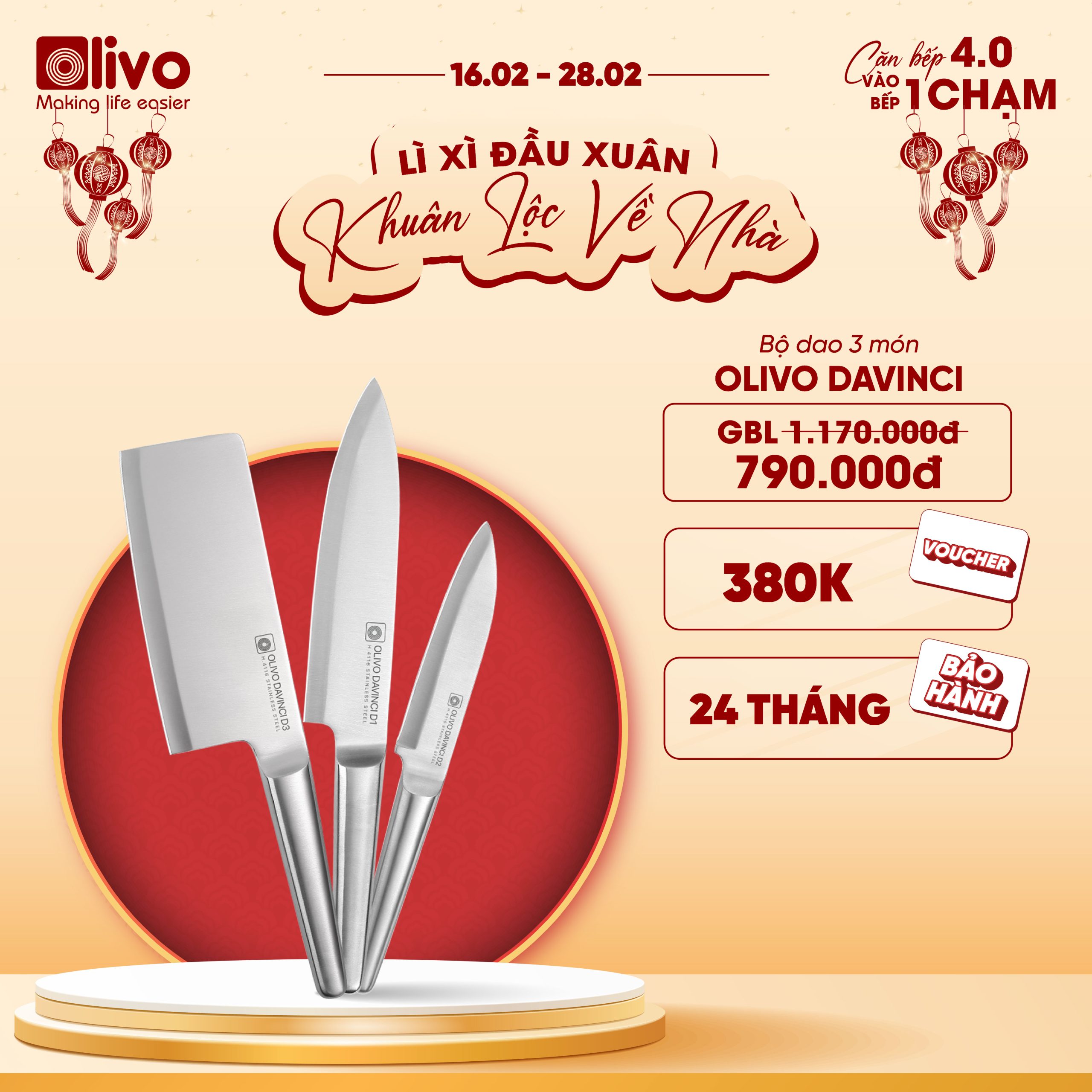 - Bộ dao 3 món OLIVO DAVINCI là dòng sản phẩm mới ra mắt của thương hiệu OLIVO, nổi bật với vật liệu cao cấp, lưỡi dao sắc bén với 3 kích thước dao dùng phổ biến nhất hiện nay.
