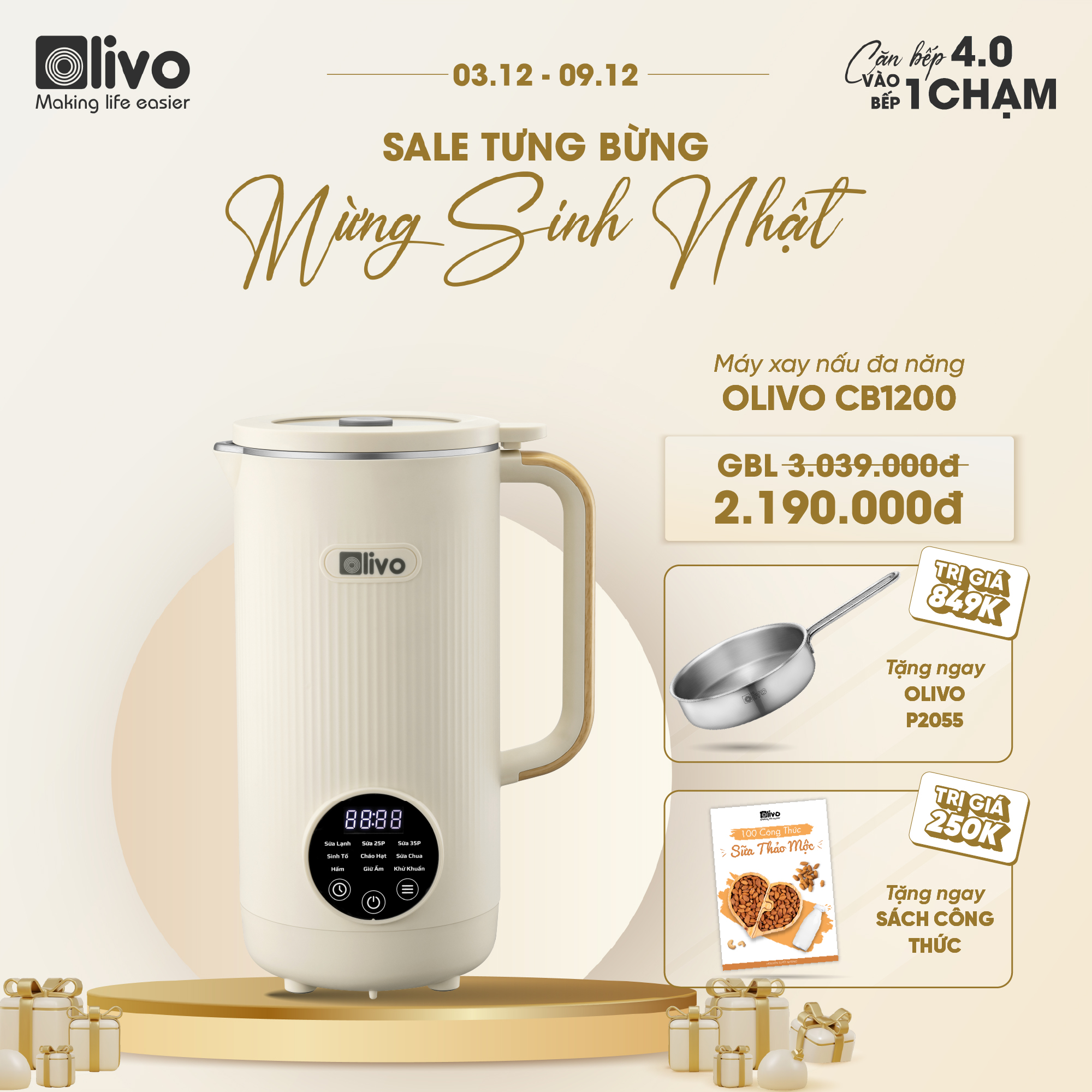 Máy Xay Nấu Đa Năng OLIVO CB1200, Dung Tích 1.2L, Nắp INOX 304 Kết Hợp Kính Cường Lực, 10 Chế độ, Khử khuẩn, Chống Trào Tuyệt Đối