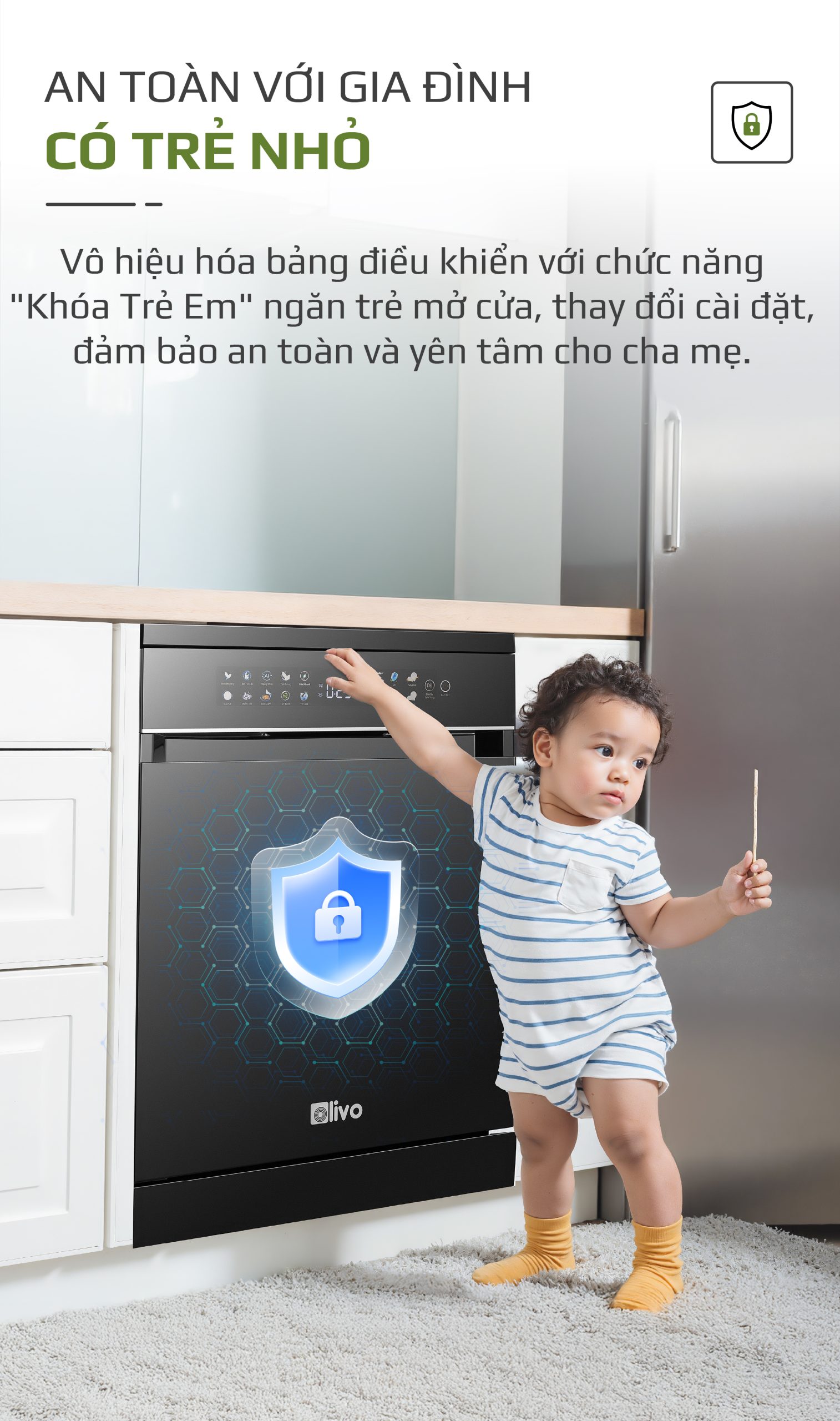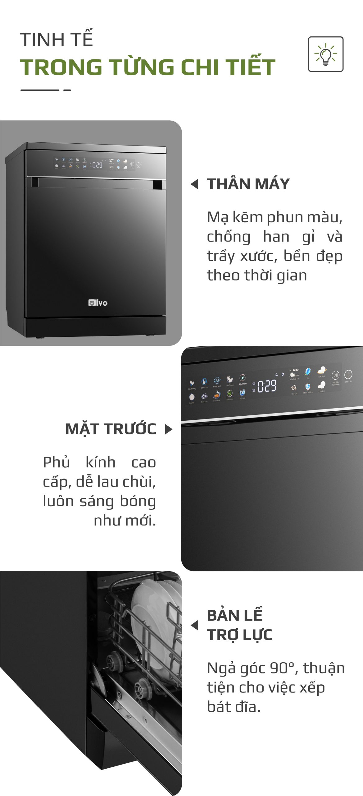 - Hiểu rõ nhu cầu và mong muốn ngày càng cao của người tiêu dùng hiện đại, đội ngũ phát triển sản phẩm của OLIVO đã dày công nghiên cứu và cho ra đời máy rửa bát OLIVO DW18 sản phẩm kết tinh từ khát vọng nâng tầm trải nghiệm sống tiện nghi. Không chỉ là một thiết bị gia dụng, máy rửa bát OLIVO DW18 còn là biểu tượng của sự hiện đại trong căn bếp, nơi công nghệ và thẩm mỹ giao thoa. Với thiết kế màu đen sang trọng, động cơ DC vận hành êm ái và tích hợp những công nghệ tiên tiến như sấy khô EcoDry, diệt khuẩn bằng tia UV, Công nghệ rửa Hydro360 Wash thông minh… sản phẩm mang đến giải pháp rửa bát sạch khuẩn, tiết kiệm thời gian và chăm sóc sức khỏe gia đình một cách toàn diện.