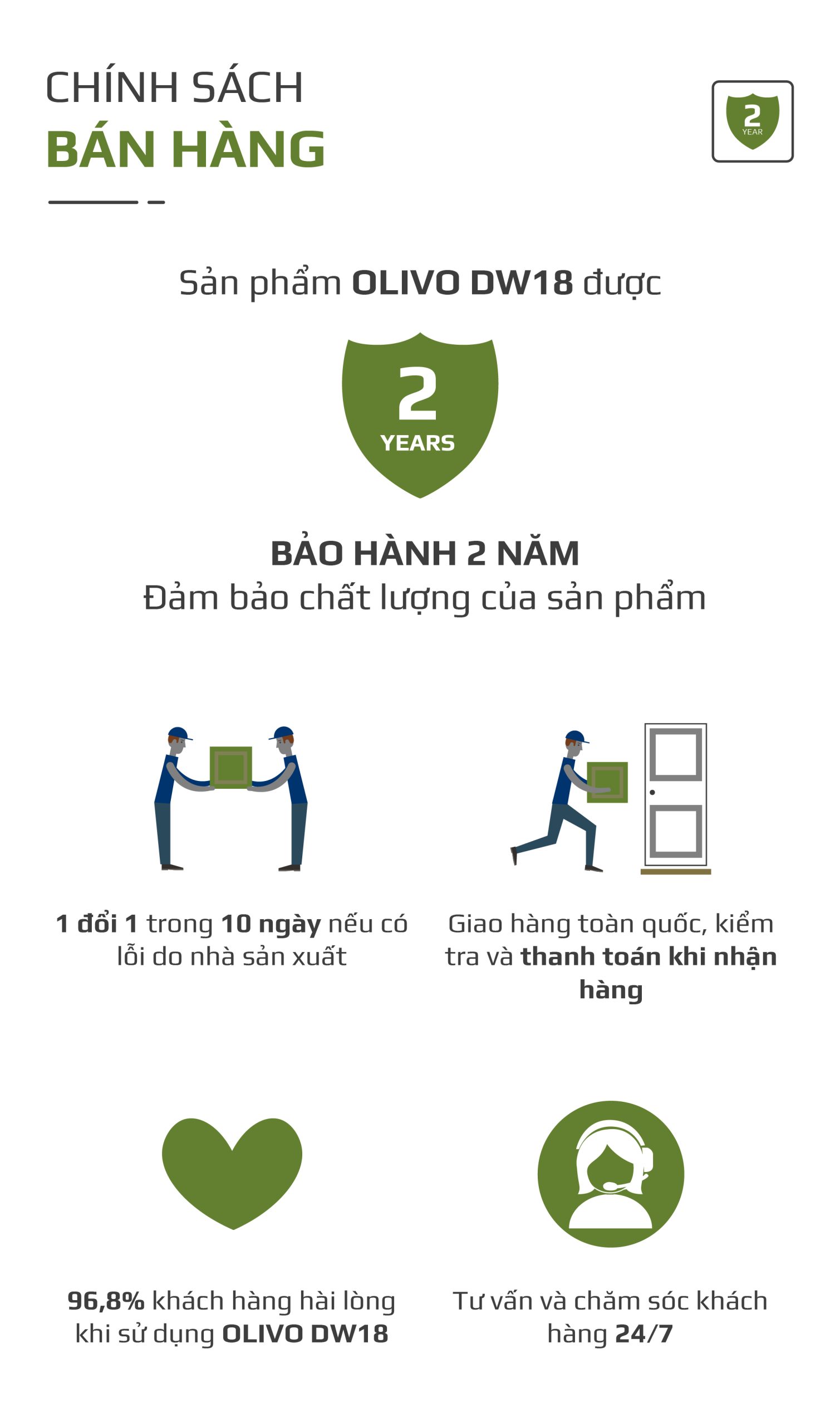 - Công nghệ HYDRO360 WASH chính là yếu tố tạo nên sự khác biệt của OLIVO DW18, giúp tối ưu khả năng làm sạch và mang lại sự an tâm tuyệt đối cho người sử dụng.