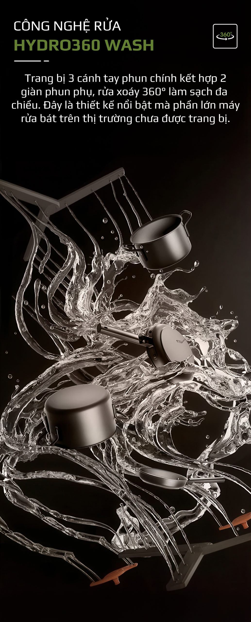 - Công nghệ rửa Hydro360 Wash (3 cánh tay phun + 2 giàn phụ)