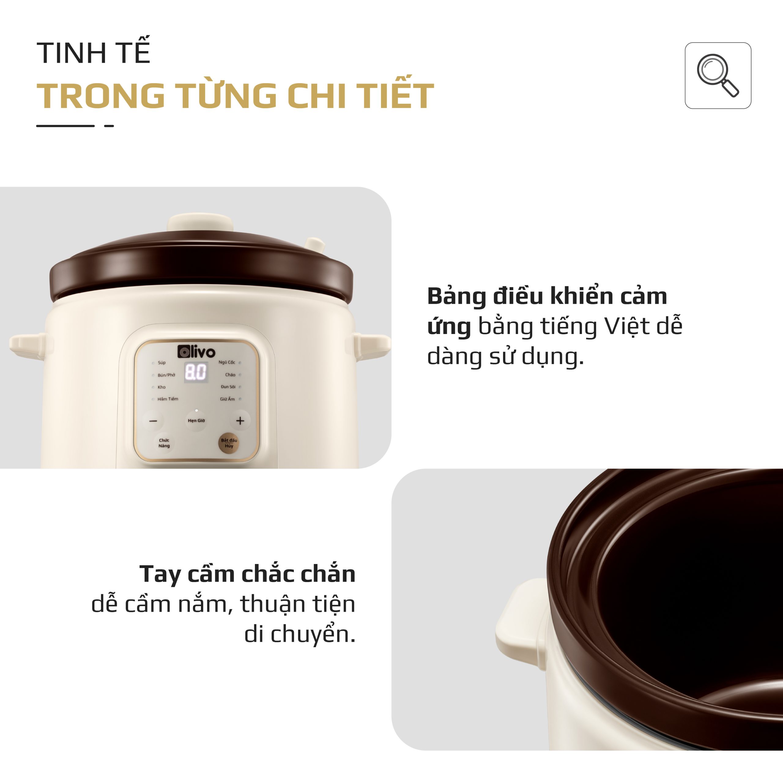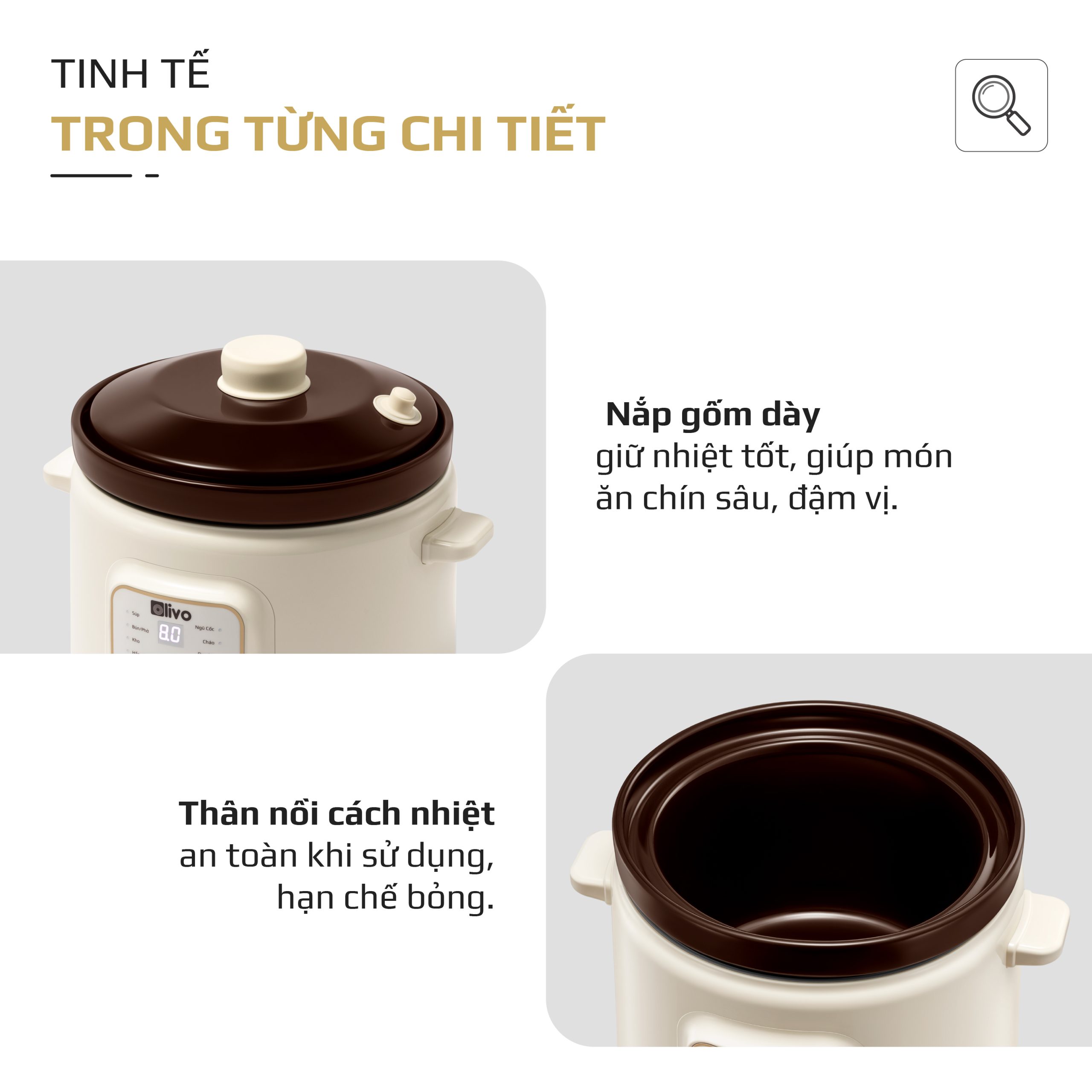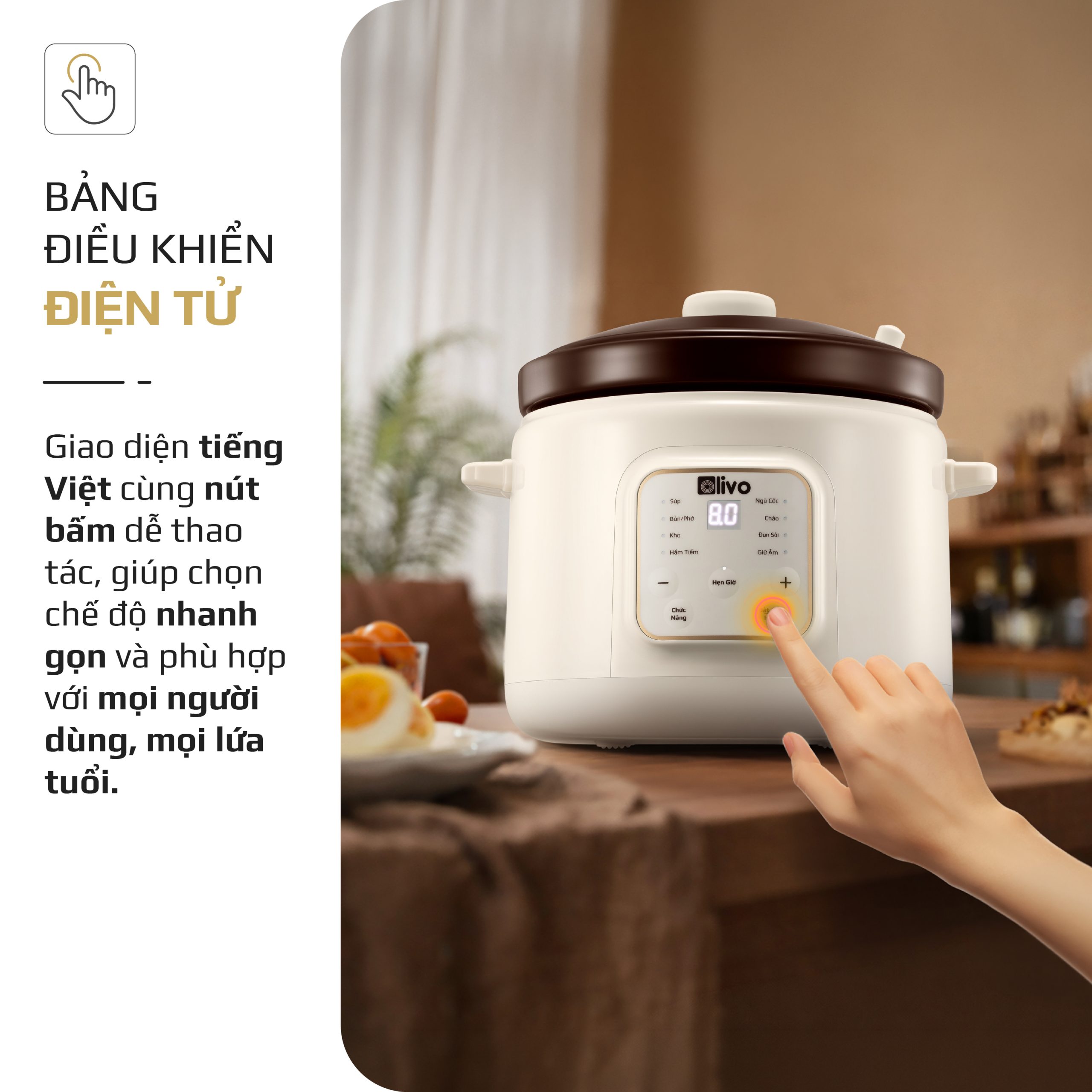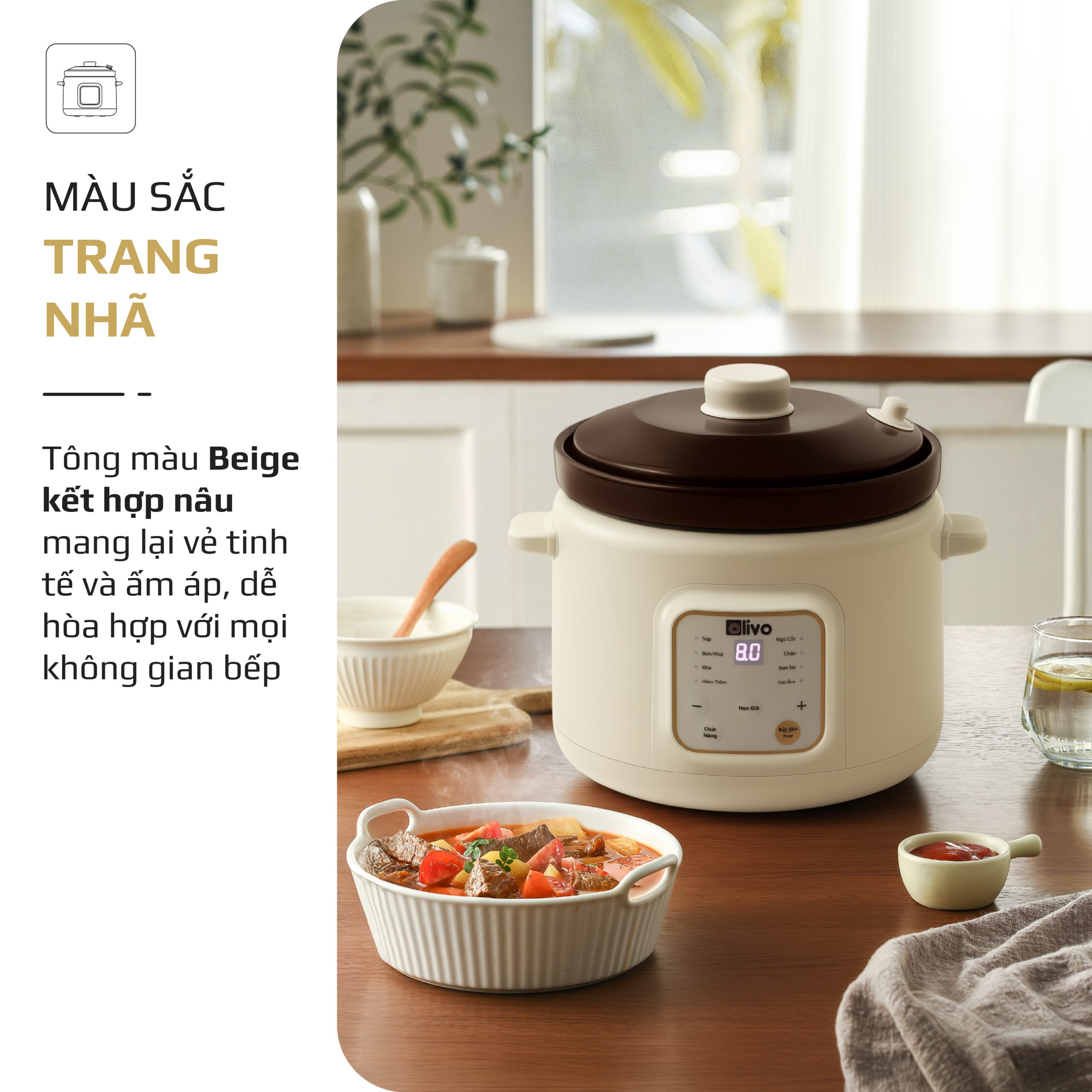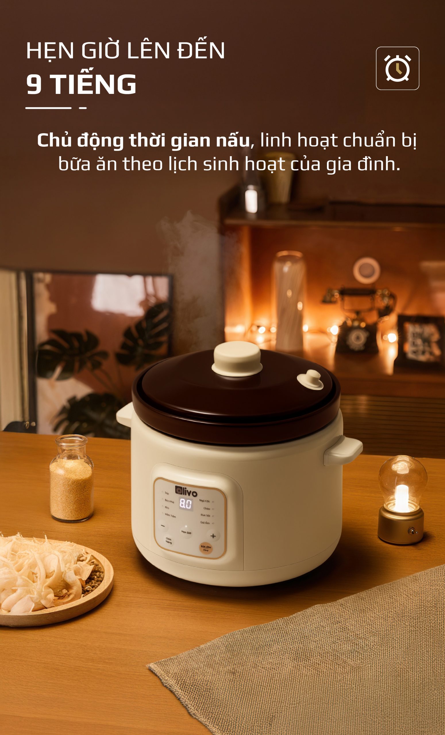 - OLIVO OSC30 không chỉ là một chiếc nồi nấu chậm, mà là trợ lý bếp núc thông minh giúp bạn chuẩn bị những bữa ăn bổ dưỡng, tiết kiệm thời gian, giữ trọn yêu thương và sự an tâm cho cả gia đình.