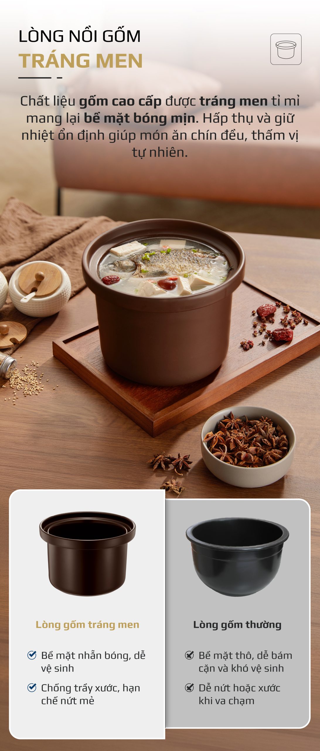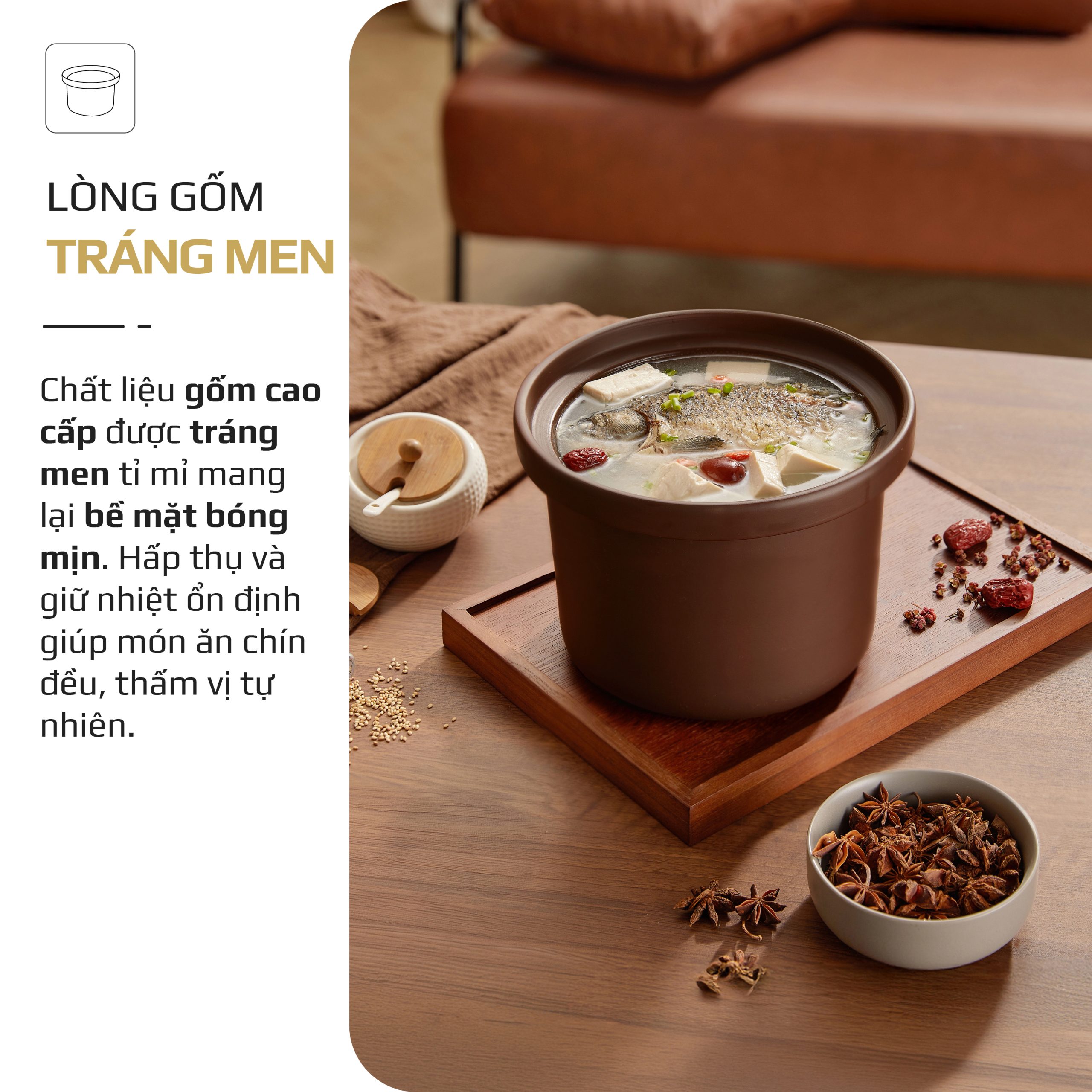 7. LÒNG GỐM TRÁNG MEN – GIỮ NHIỆT CHUẨN, VỊ NGON TRỌN VẸN