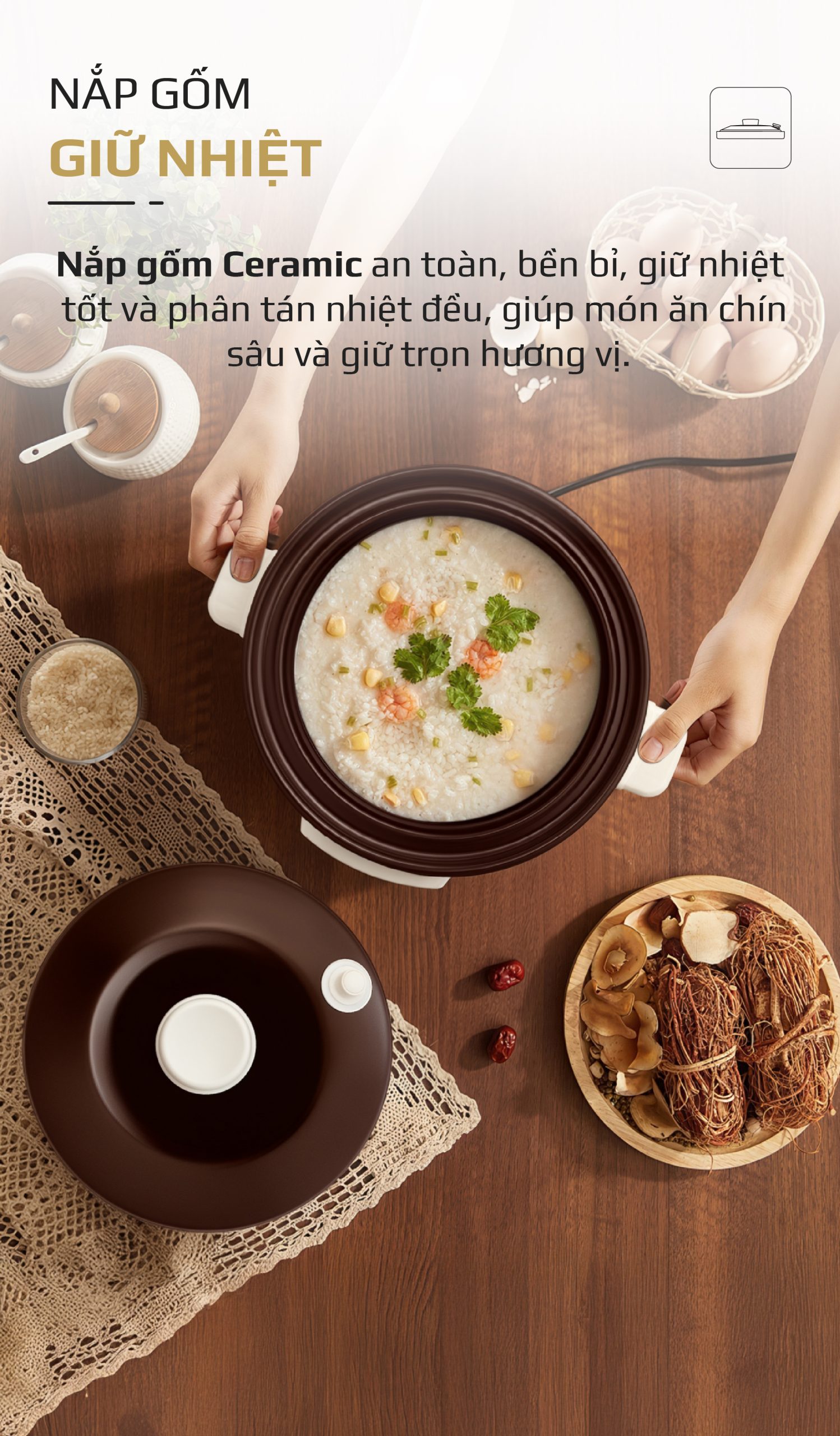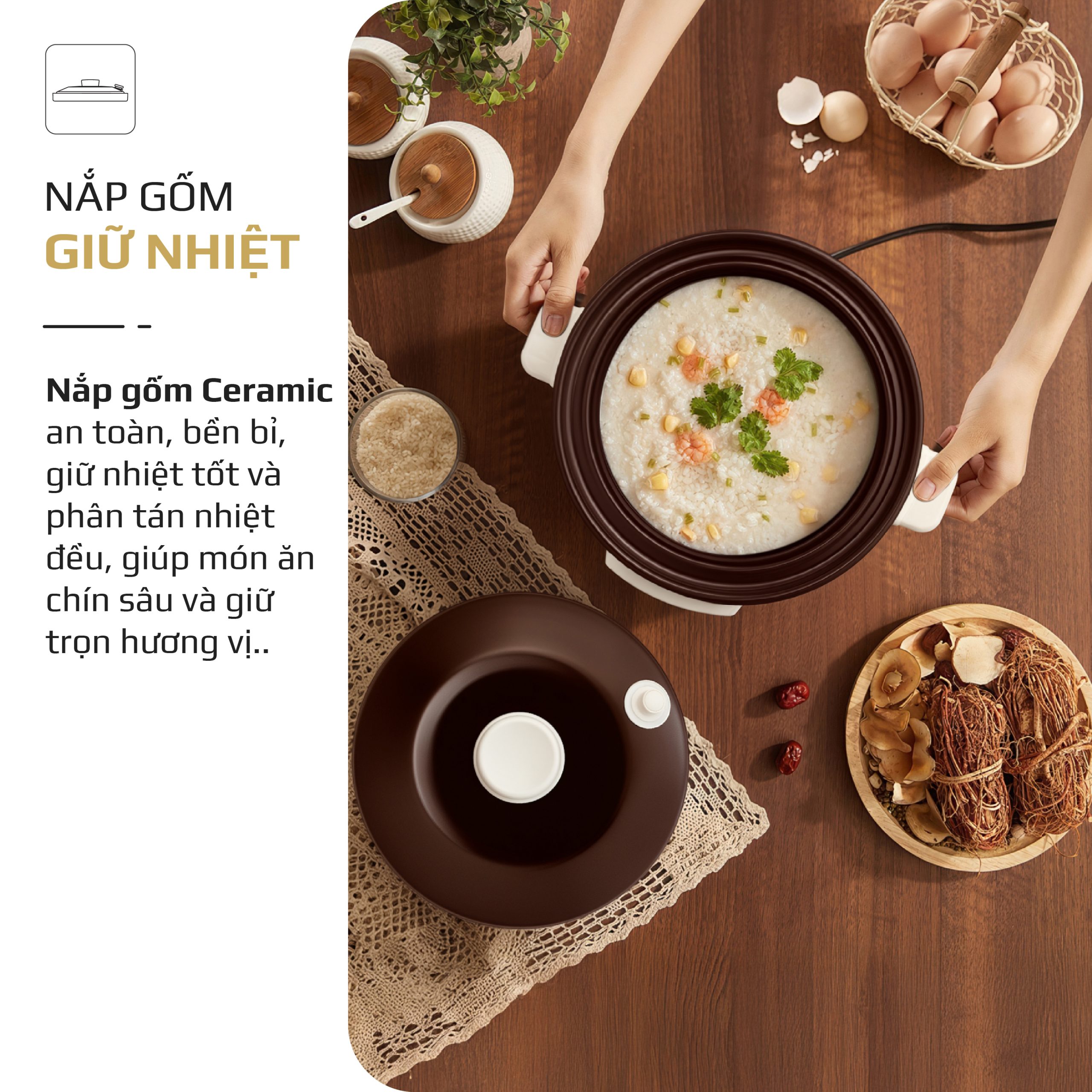 9. NẮP GỐM GIỮ NHIỆT – KHÓA TRỌN HƯƠNG VỊ