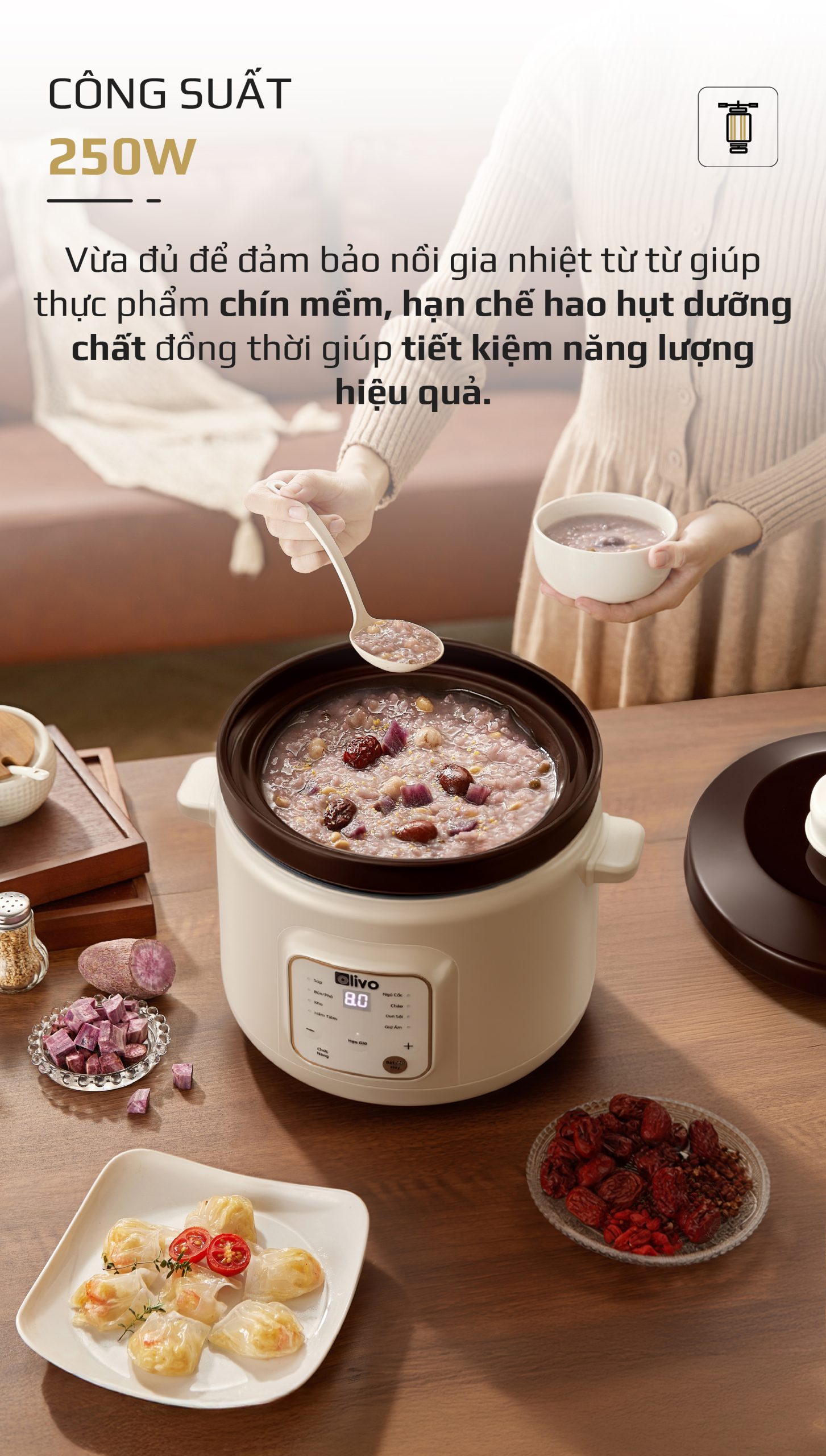 5. CÔNG SUẤT 250W – NẤU CHẬM ĐÚNG CHUẨN, TIẾT KIỆM ĐIỆN