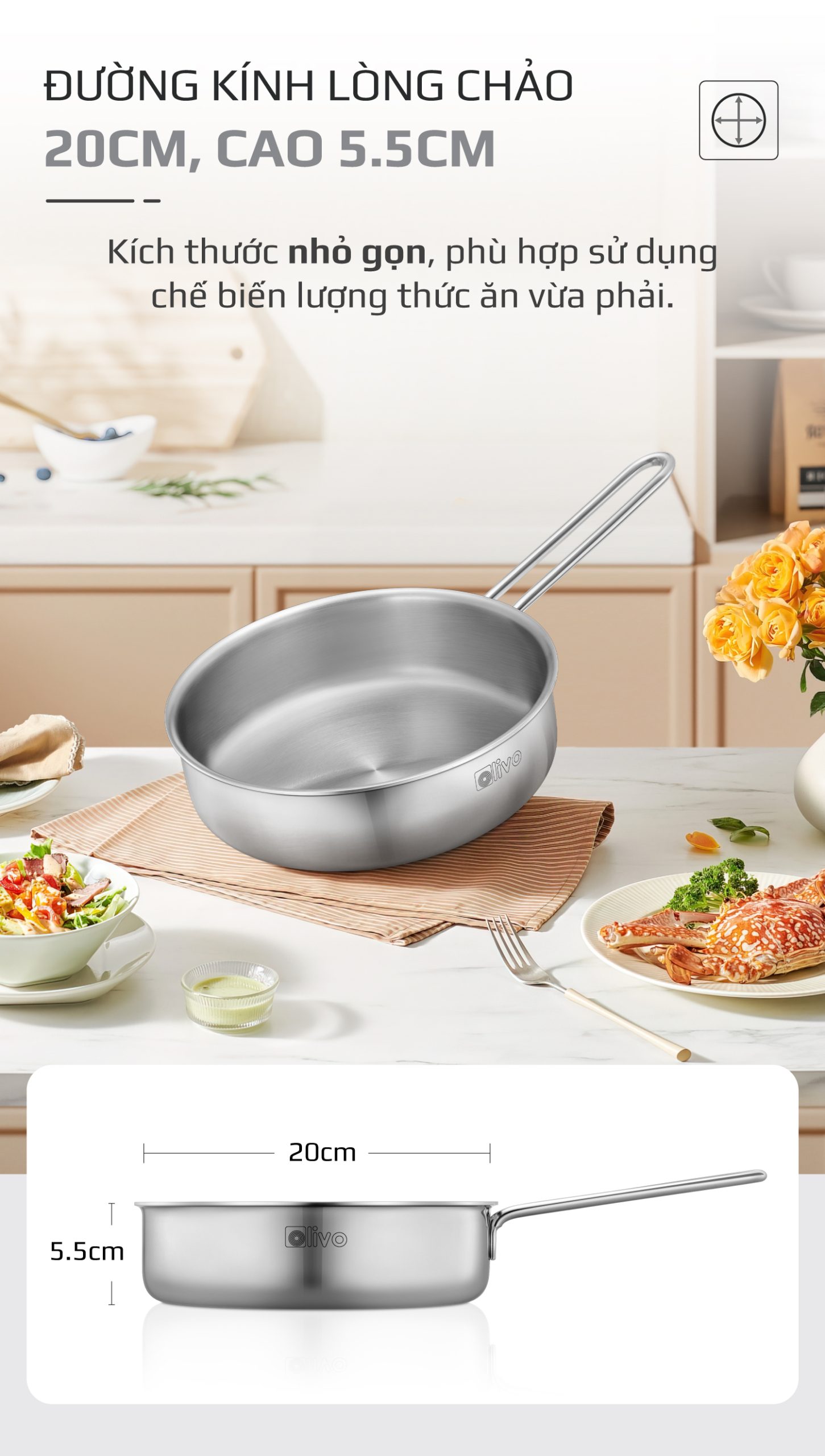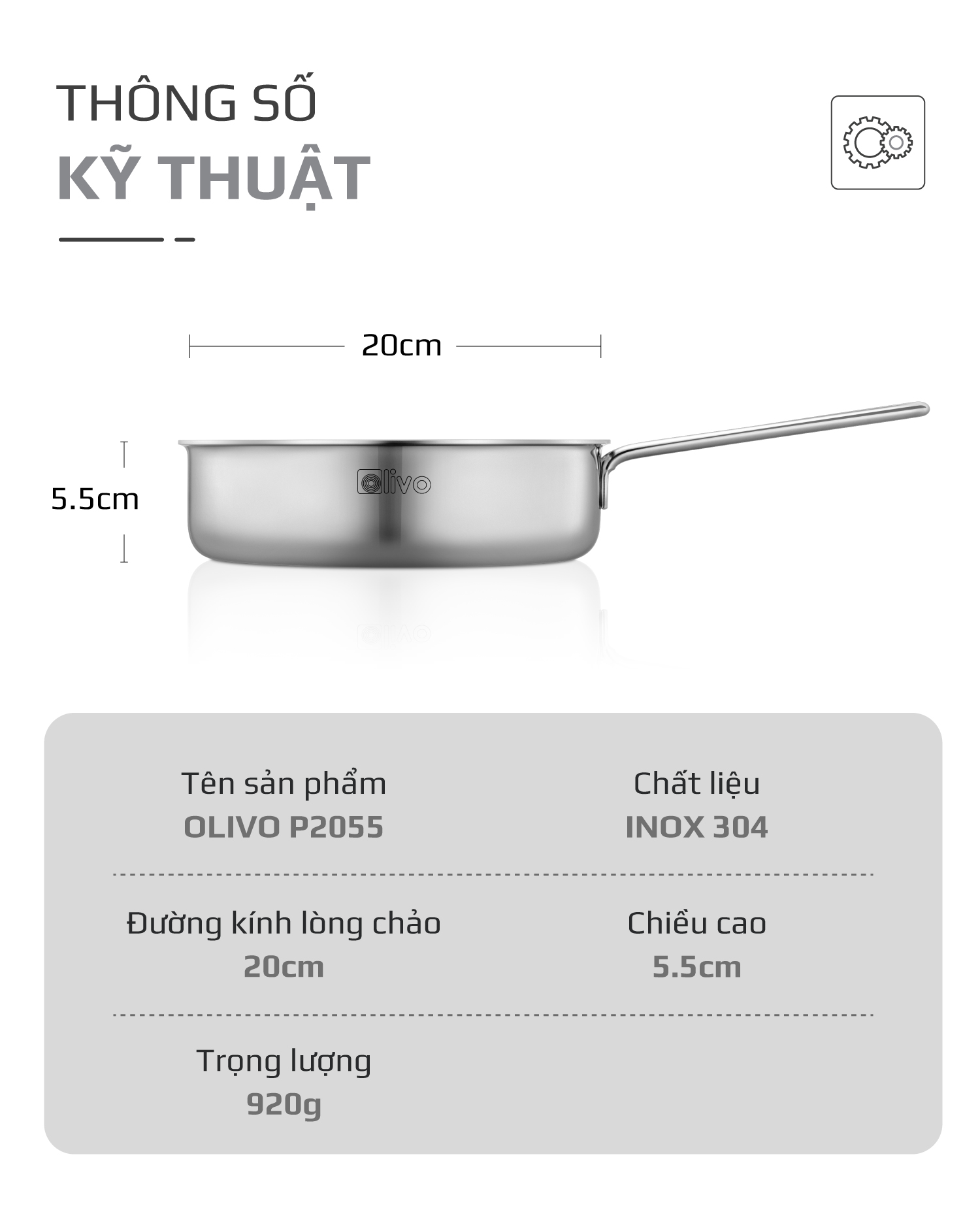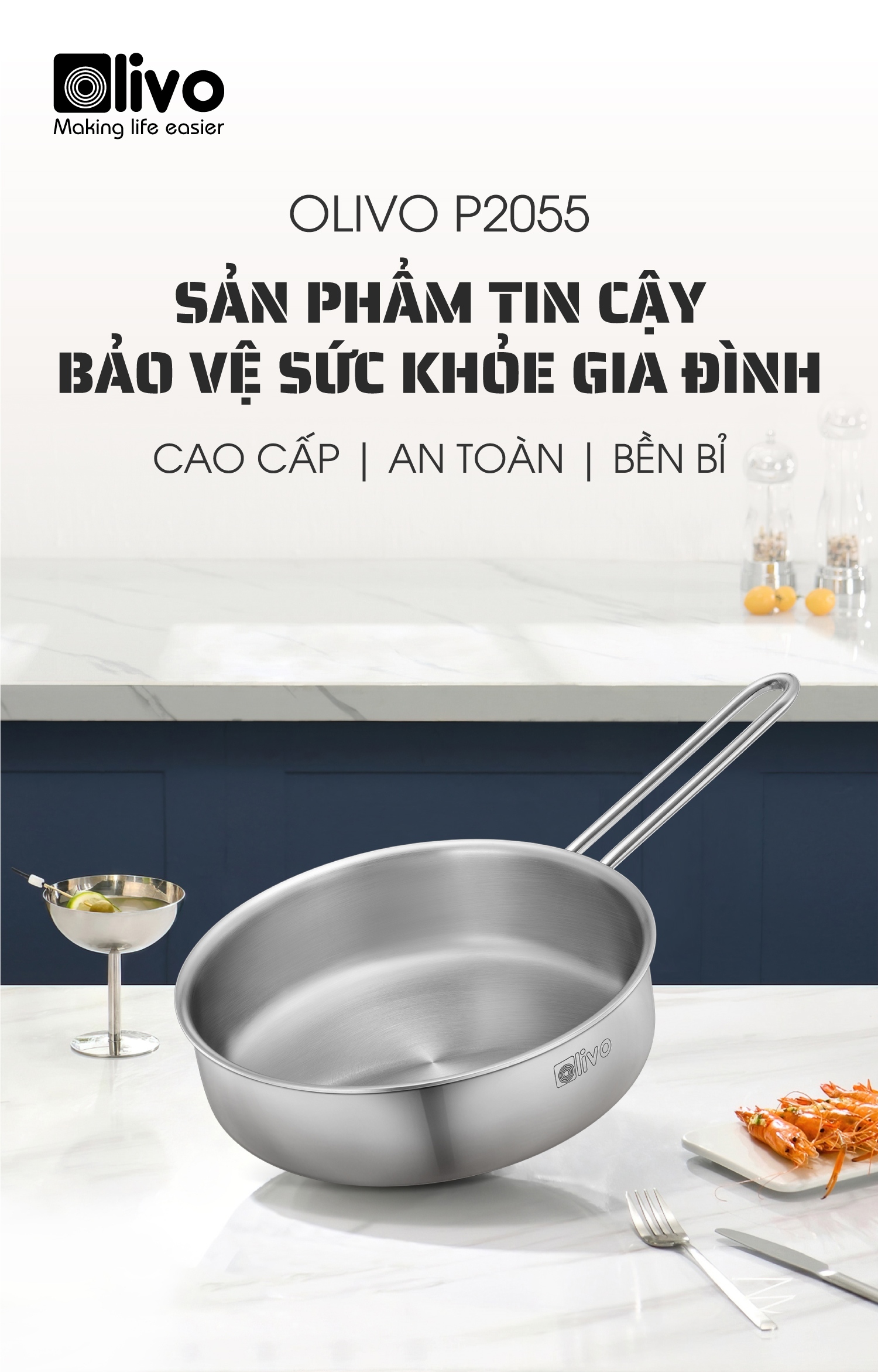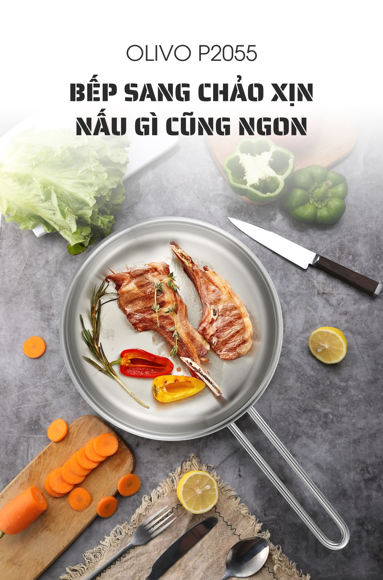 Sản phẩm chảo INOX cao cấp OLIVO P2055 được làm từ chất liệu INOX 304 cao cấp bền bỉ, chống dính tự nhiên an toàn cho sức khỏe, giúp bạn chế biến món ăn một cách tiện lợi và chuyên nghiệp. Xứng đáng là trợ thủ đắc lực cho những bữa ăn ngon, chuẩn vị nhà hàng ngay tại nhà!