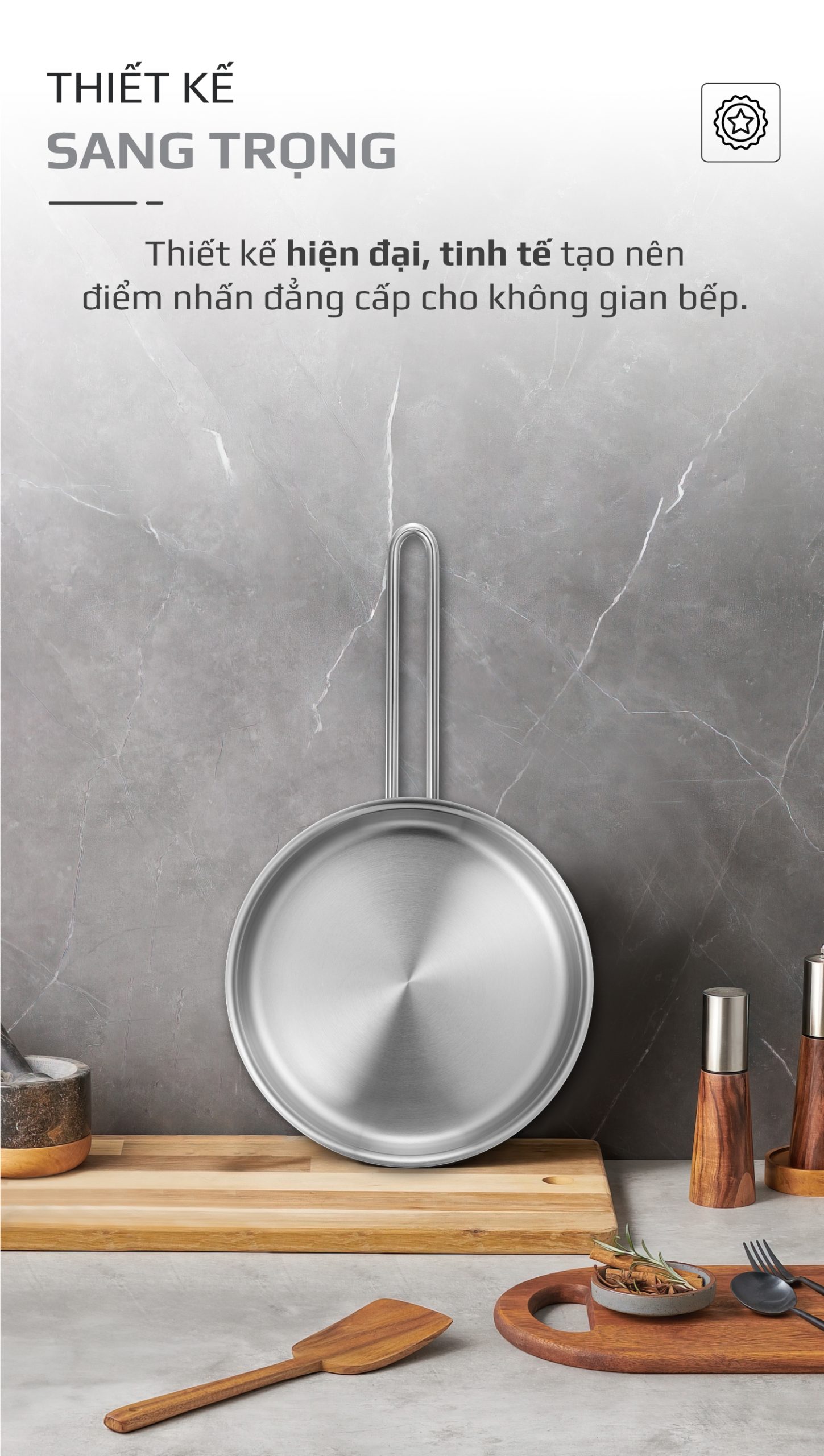 Khả năng chống trầy xước: Bề mặt chảo INOX khó bị trầy xước bởi các dụng cụ nấu nướng, giúp chảo luôn giữ được vẻ ngoài sáng bóng.