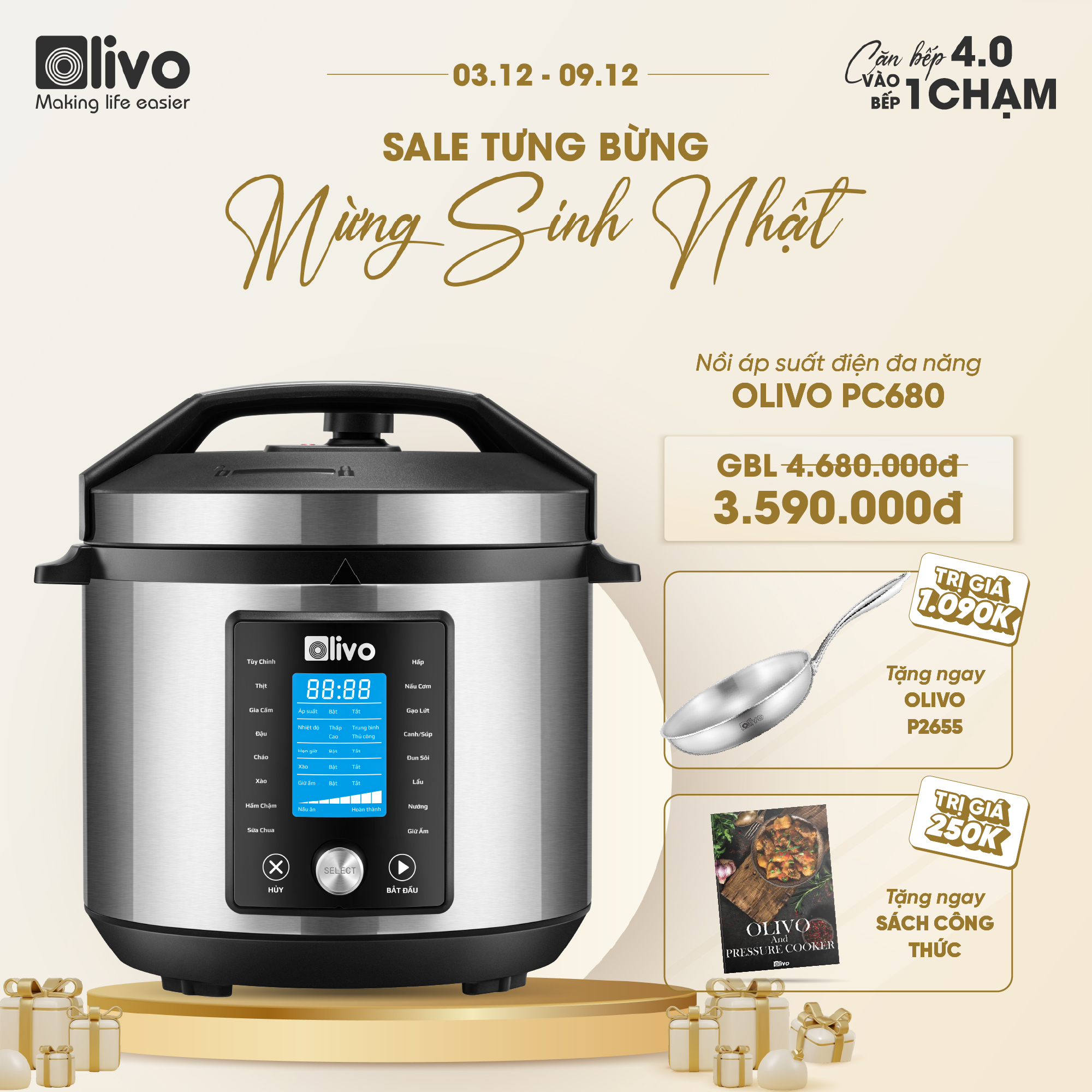 OLIVO trân trọng giới thiệu đến quý khách hàng sản phẩm mới – Nồi áp suất điện OLIVO PC680. Với thiết kế hiện đại, tính năng đa dạng và chất lượng vượt trội, PC680 hứa hẹn sẽ trở thành người bạn đồng hành không thể thiếu trong căn bếp của mỗi gia đình.