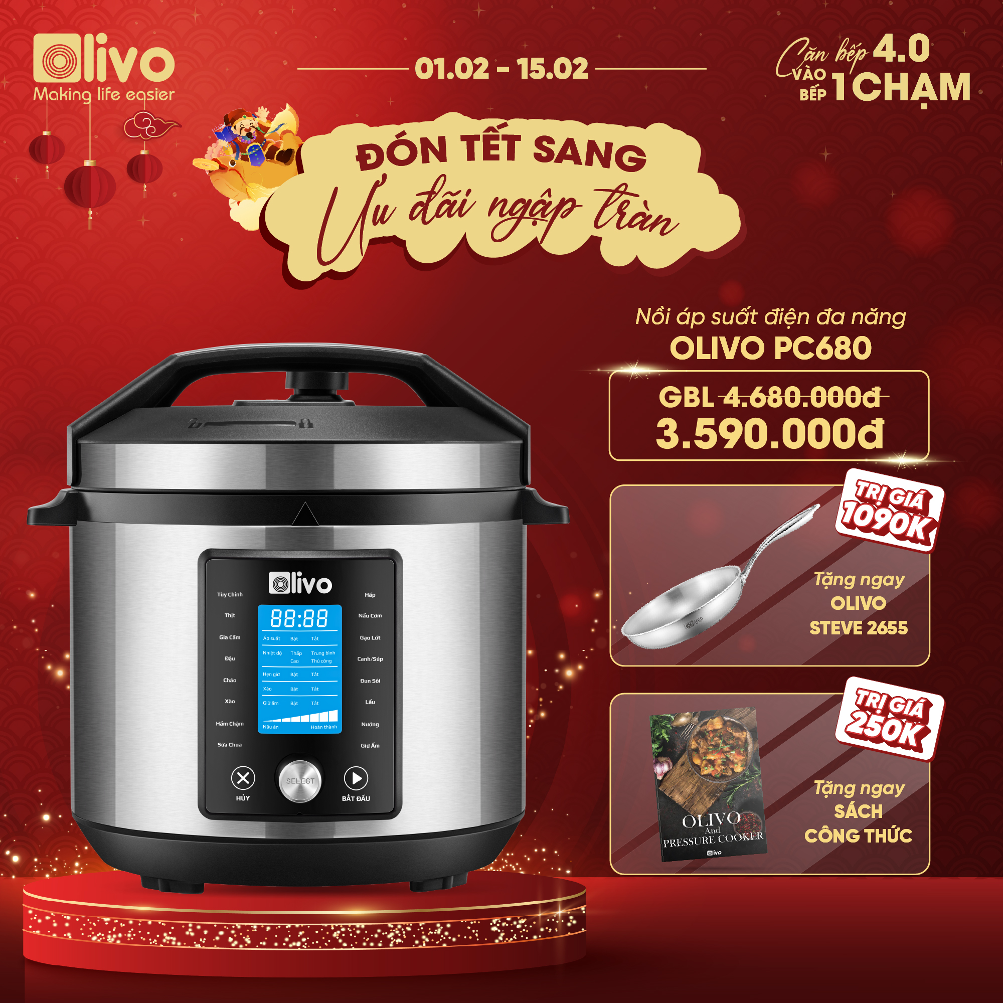 ƯU ĐIỂM VƯỢT TRỘI CỦA NỒI ÁP SUẤT ĐIỆN ĐA NĂNG OLIVO PC680