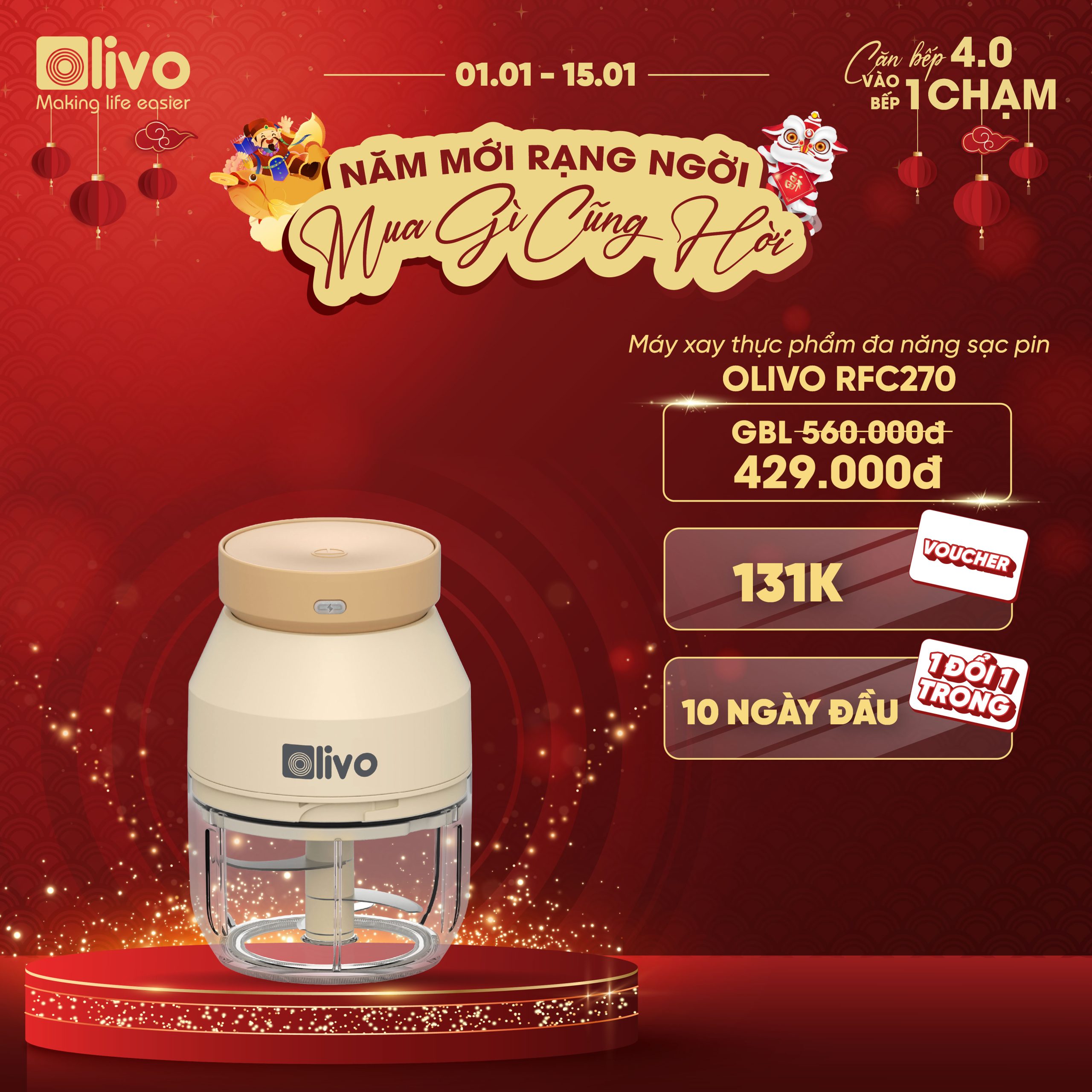 - Trong những ngày bận rộn, việc nấu nướng trở nên dễ dàng và nhanh chóng hơn nhờ Máy xay thực phẩm đa năng sạc pin OLIVO RFC270. Có thiết kế nhỏ gọn, tiện dụng trong việc xay những thực phẩm nhỏ, được các chị em phụ nữ yêu thích vì là trợ thủ lý tưởng cho gian bếp hiện đại.