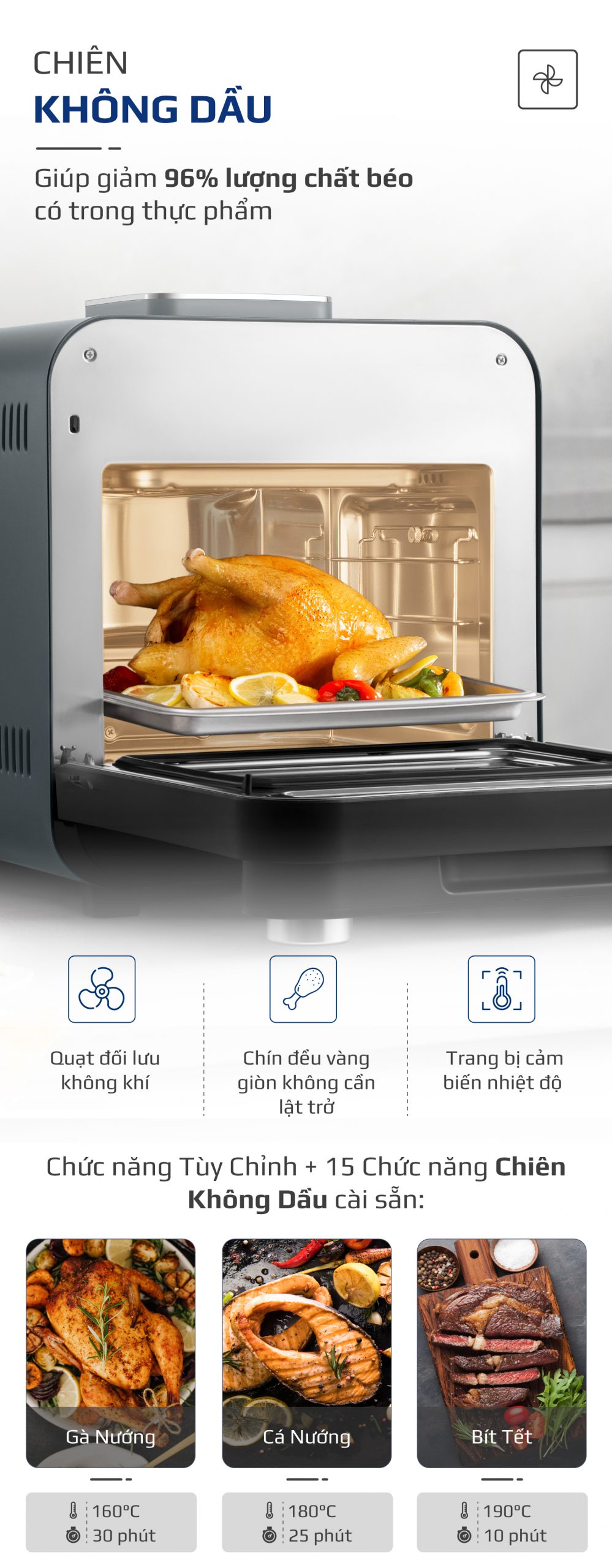 - Chiên hơi nước là tính năng mới đột phá về công nghệ mà rất ít sản phẩm trên thị trường hiện nay có được.