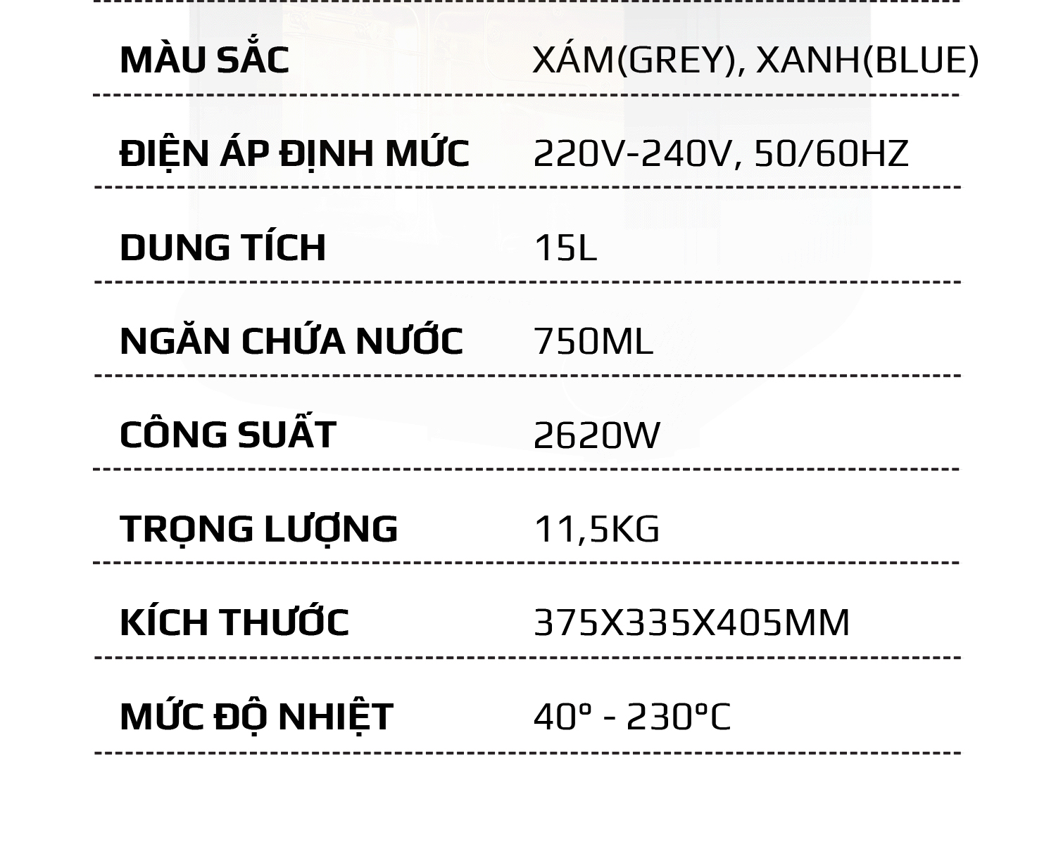 11. DUNG TÍCH 15L ĐỦ CHO GIA ĐÌNH TỪ 3 – 15 NGƯỜI VÀ NHỮNG BỮA TIỆC LỚN