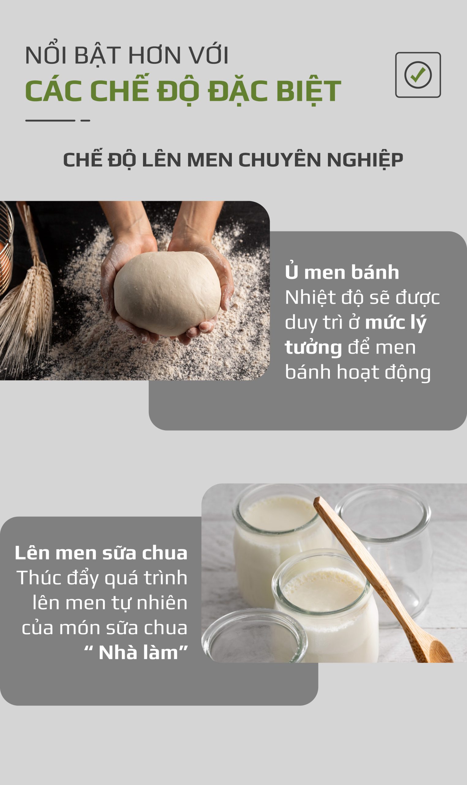 • Ngoài 13 chương trình setup trên bảng điều khiển bên ngoài, còn có menu 43 món cài đặt sẵn phù hợp với ẩm thực và phong tục chế biến món ăn của người Việt.