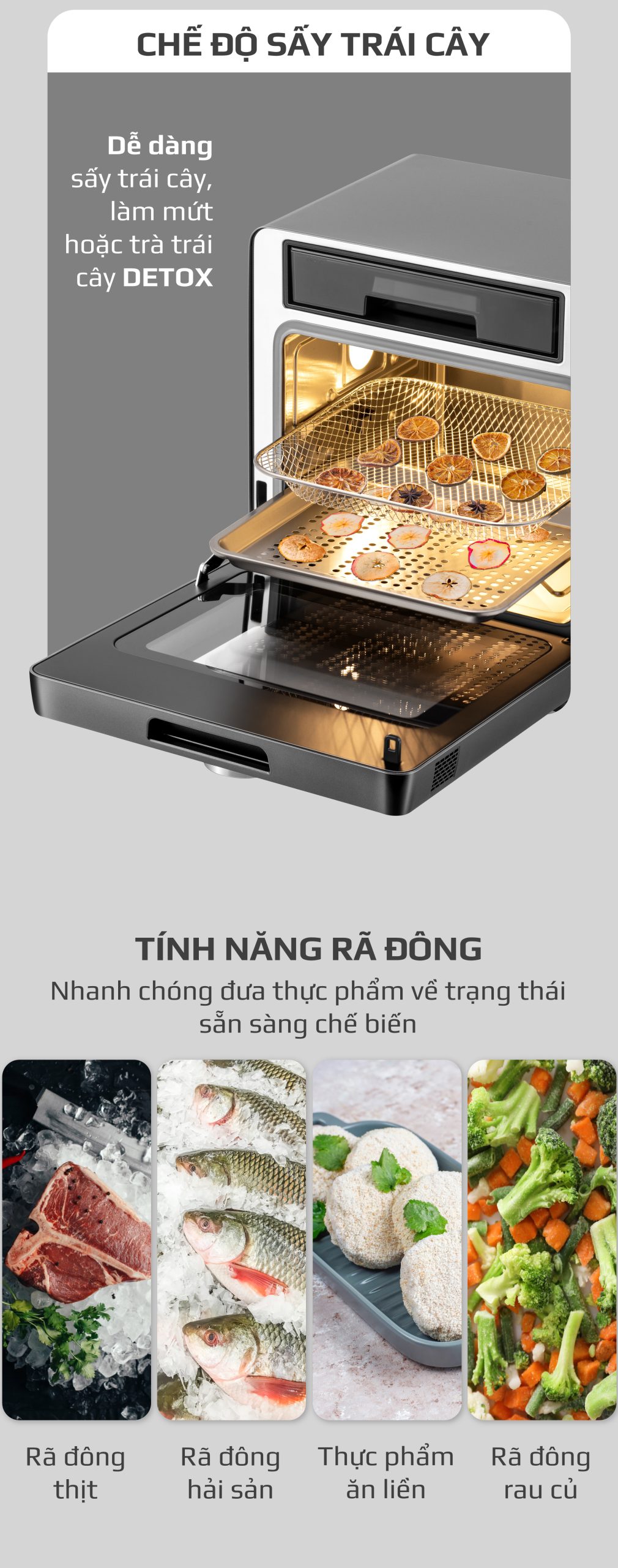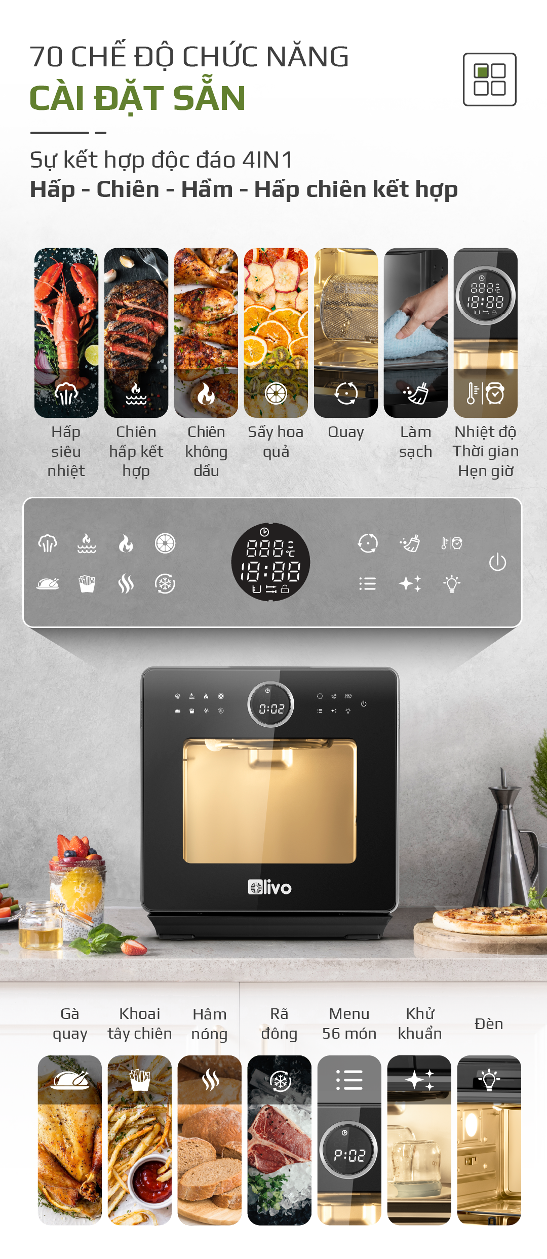 1. ĐỘT PHÁ CÔNG NGHỆ 4 TRONG 1: HẤP – CHIÊN KHÔNG DẦU – CHIÊN HẤP KẾT HỢP – HẦM