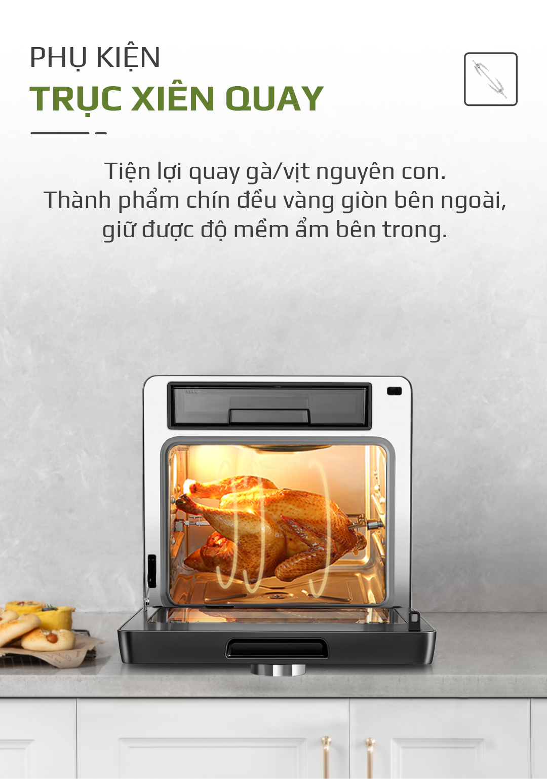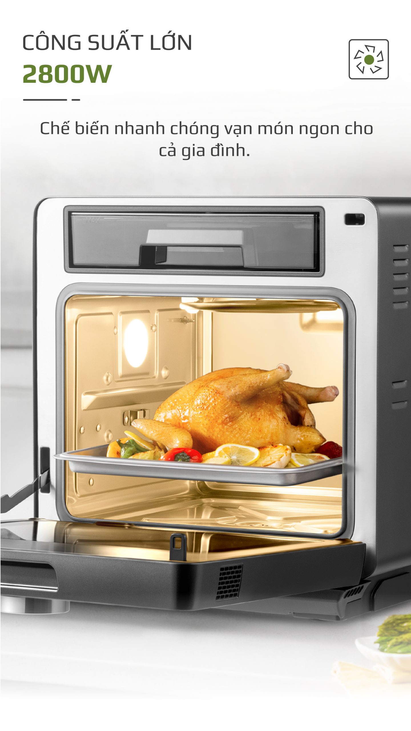 2. DUNG TÍCH LỚN ĐẾN 16 LÍT, THOẢI MÁI QUAY GÀ NGUYÊN CON