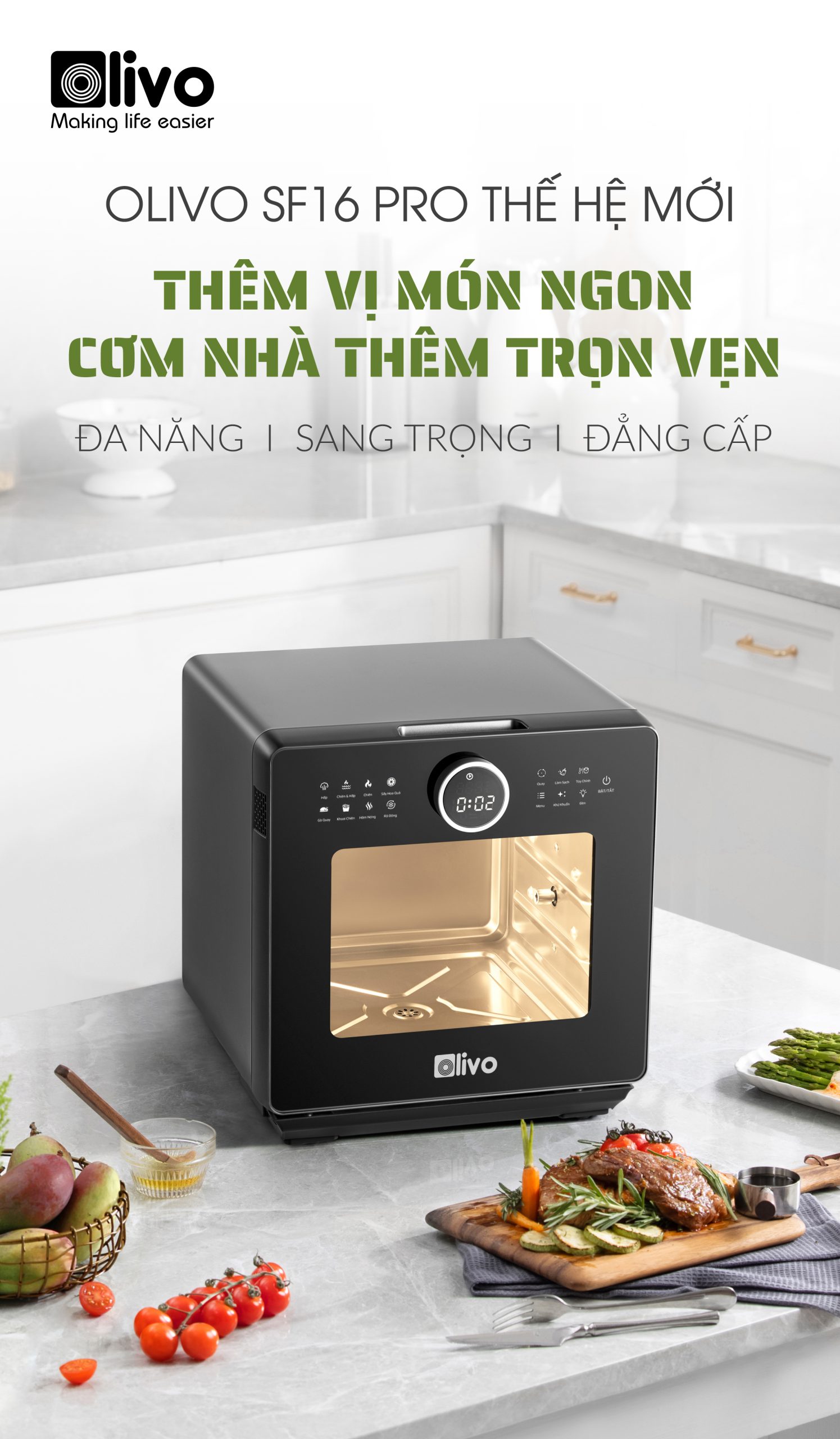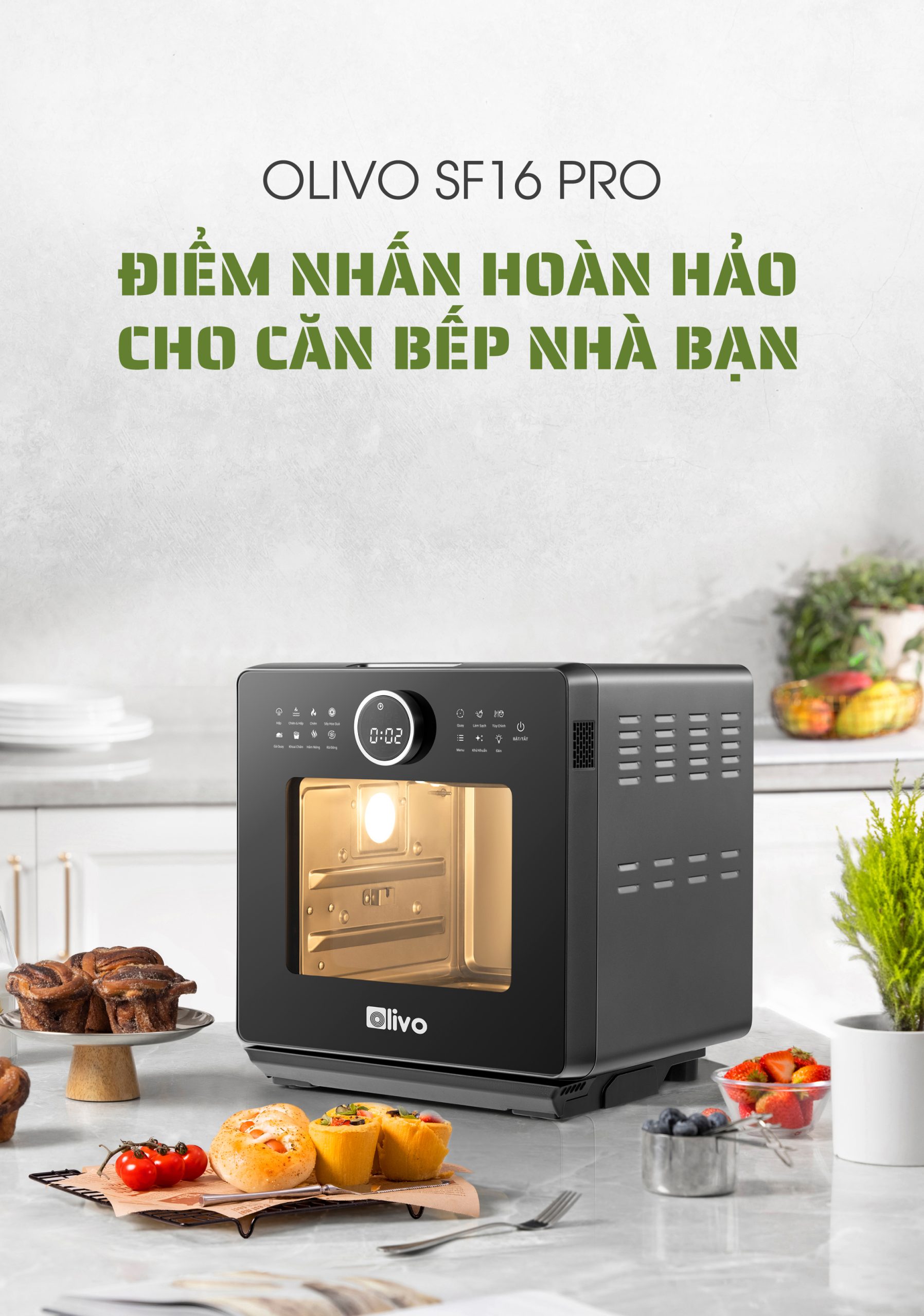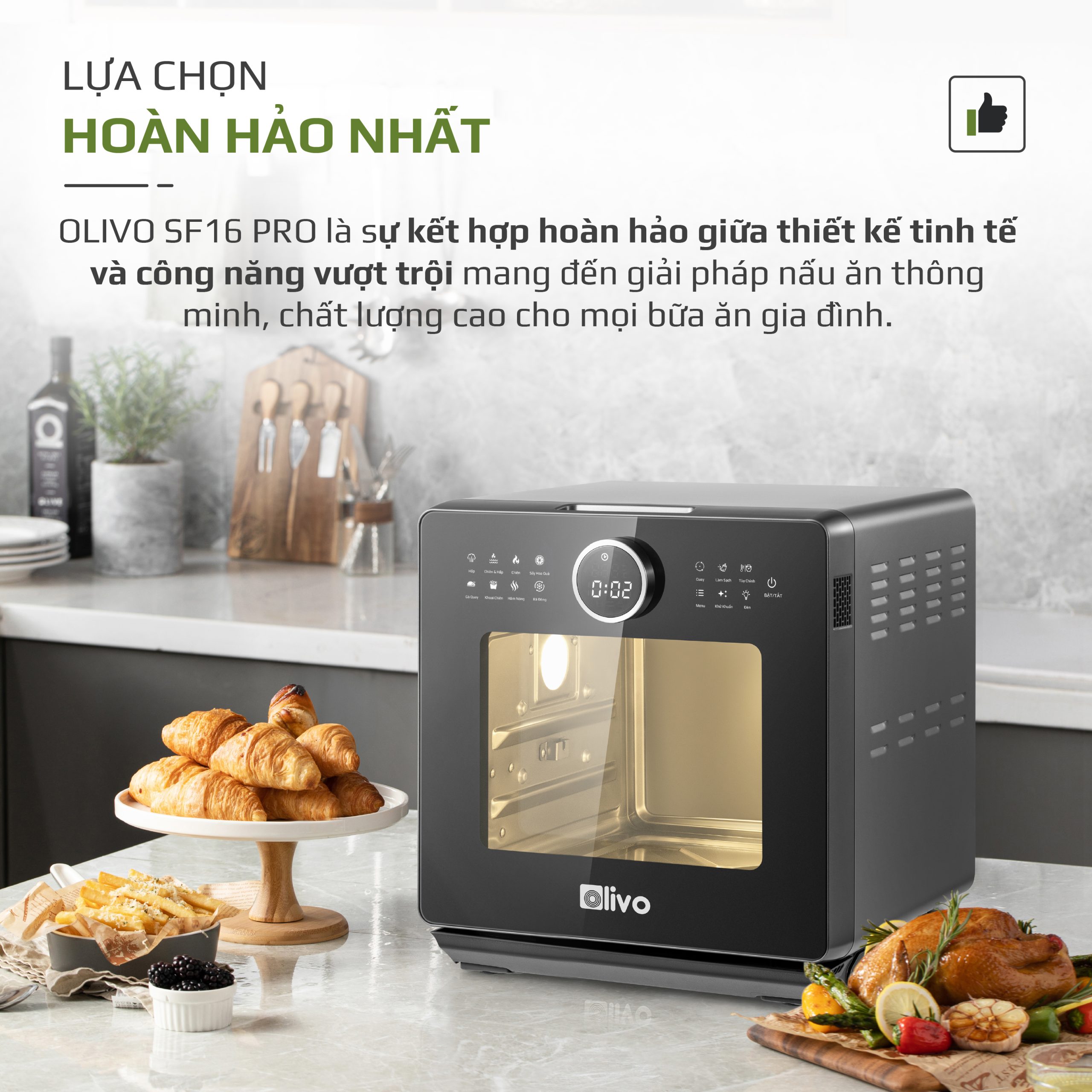 - Nồi chiên hấp OLIVO SF16 PRO là sản phẩm nồi chiên hơi nước đến từ thương hiệu OLIVO. Phiên bản mới cải tiến vượt trội với bộ phụ kiện đa dạng thêm xiên quay và lồng đảo đa năng tiện lợi. Đây sẽ là trợ thủ đắc lực cho người làm nội trợ trong công việc bếp núc.