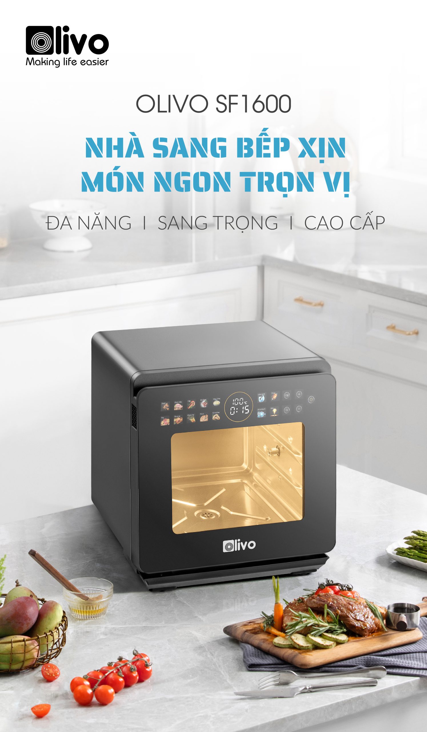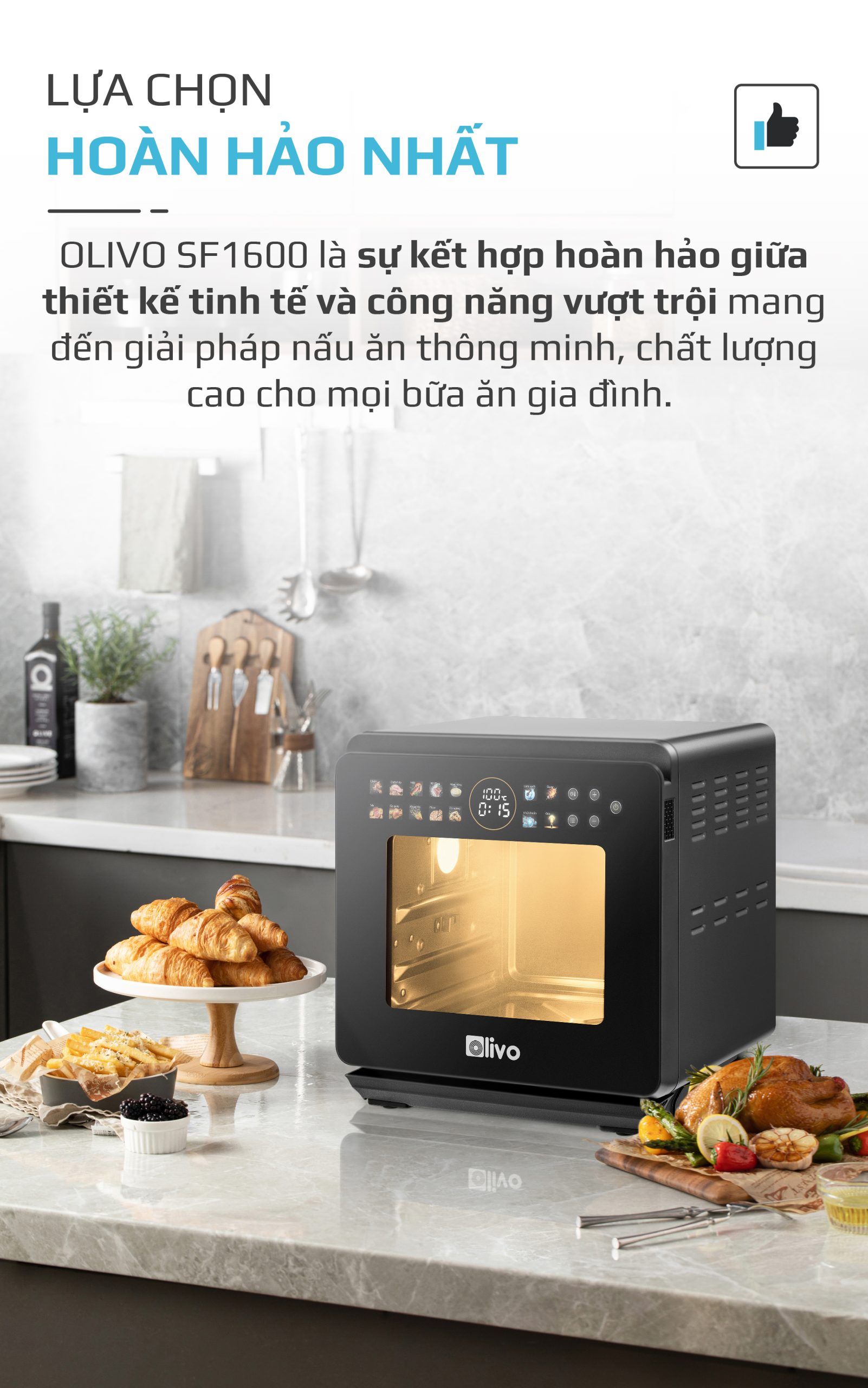Phiên bản đặc biệt OLIVO SF1600 cập nhật thêm nhiều món ngon cài đặt sẵn tiện lợi chưa từng có, gần gũi với ẩm thực Việt và tiện lợi nấu ăn hàng ngày như: