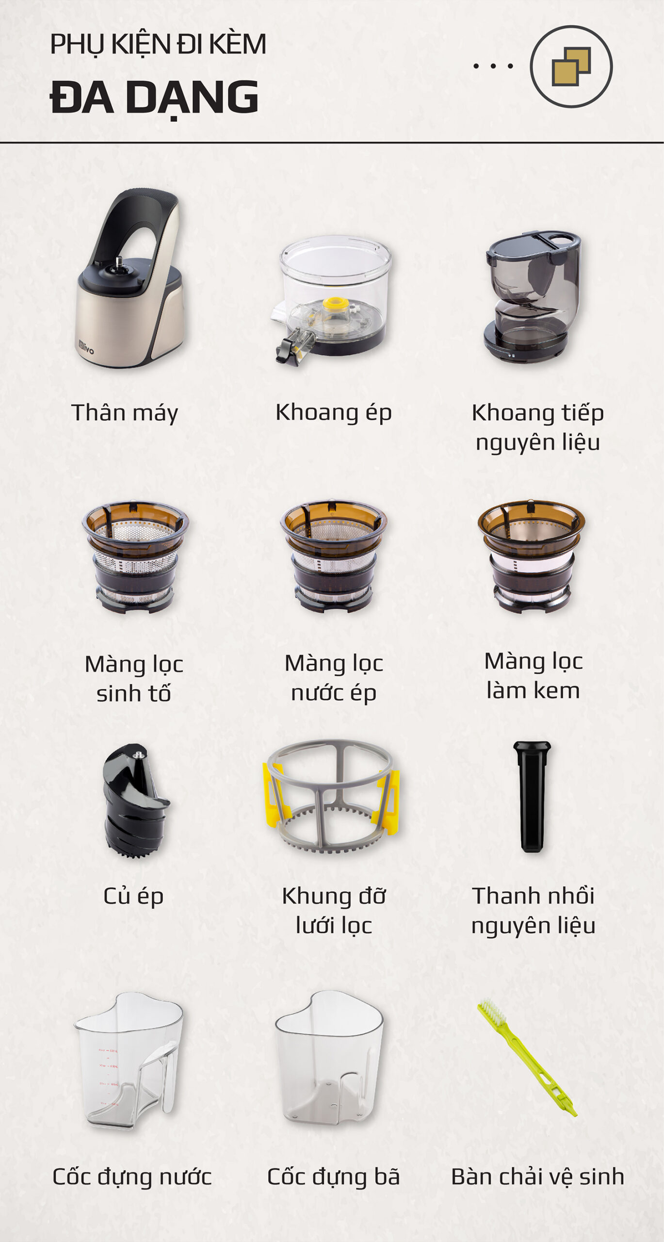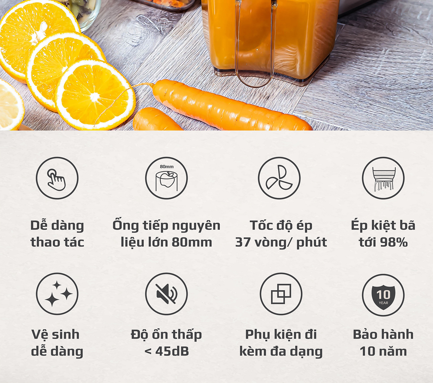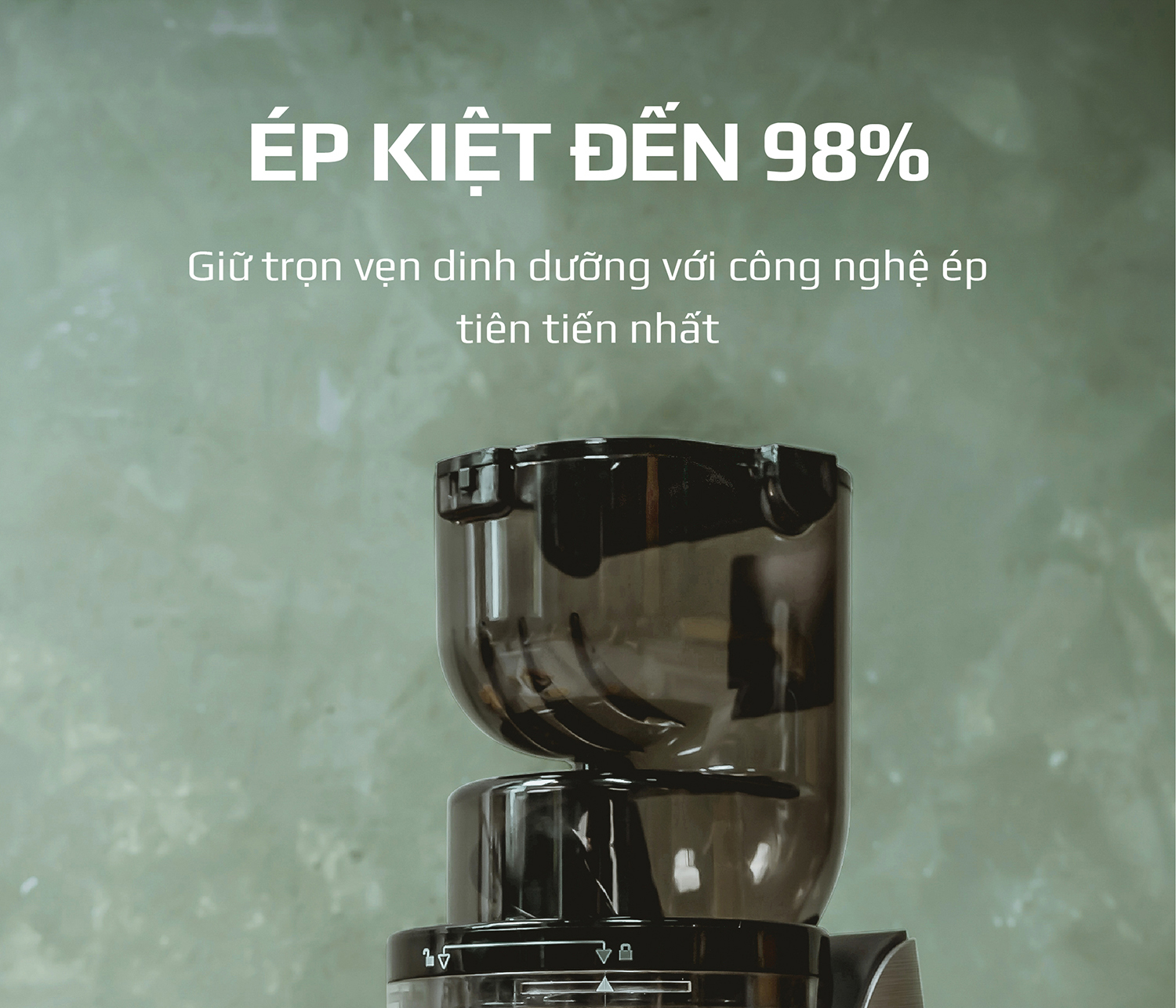 5. ÉP KIỆT ĐẾN 98% – GIỮ TRỌN VẸN DINH DƯỠNG – CÔNG NGHỆ ÉP TIÊN TIẾN NHẤT
