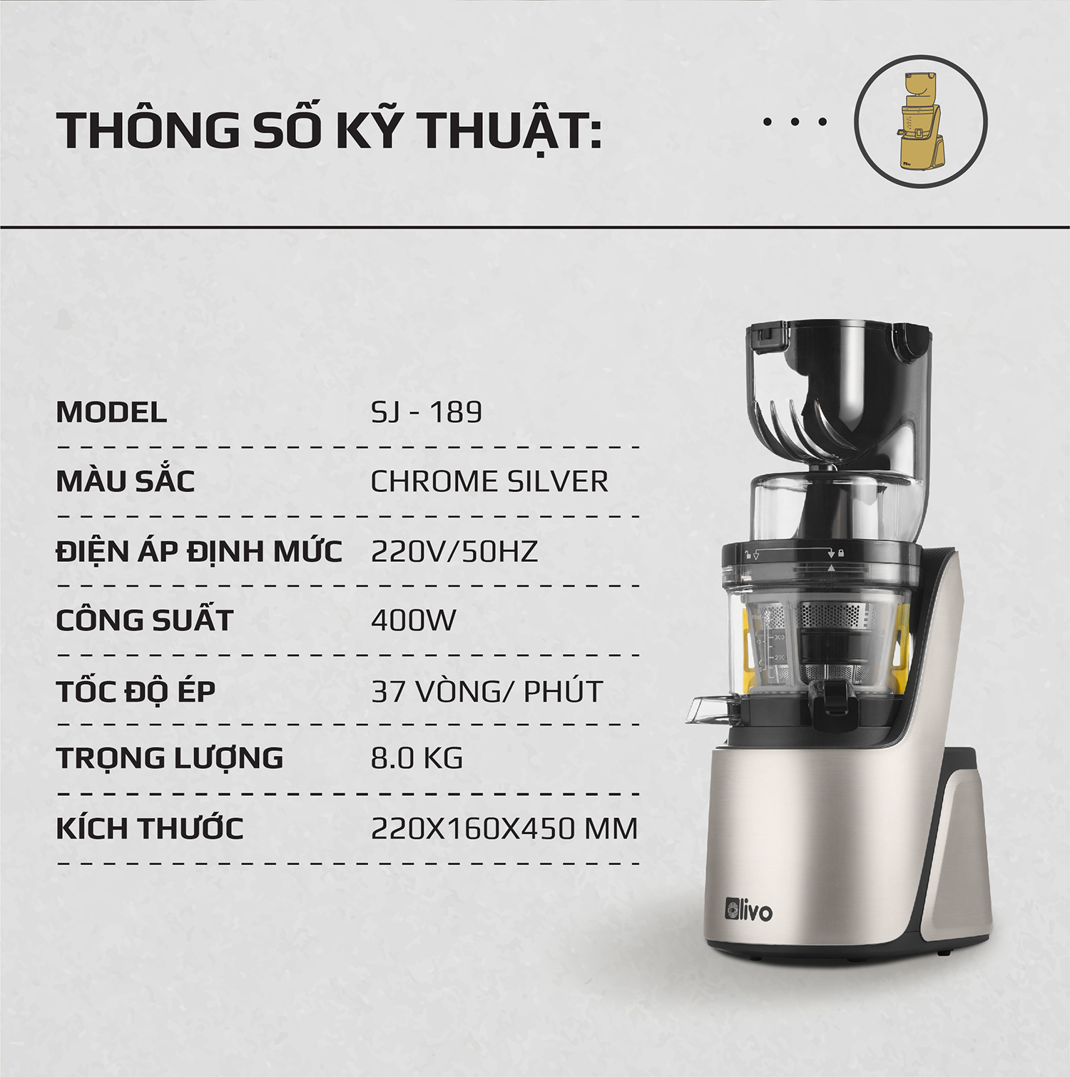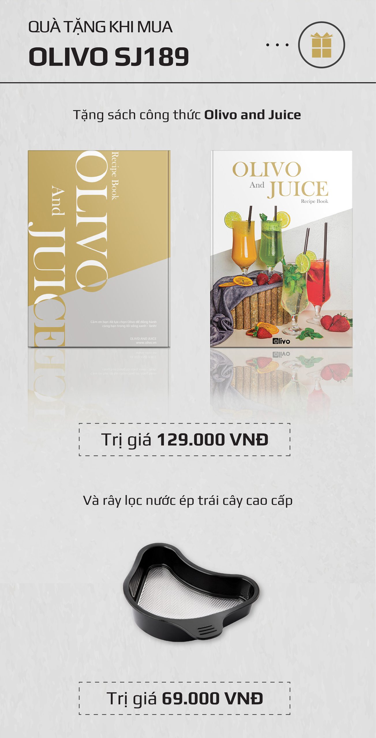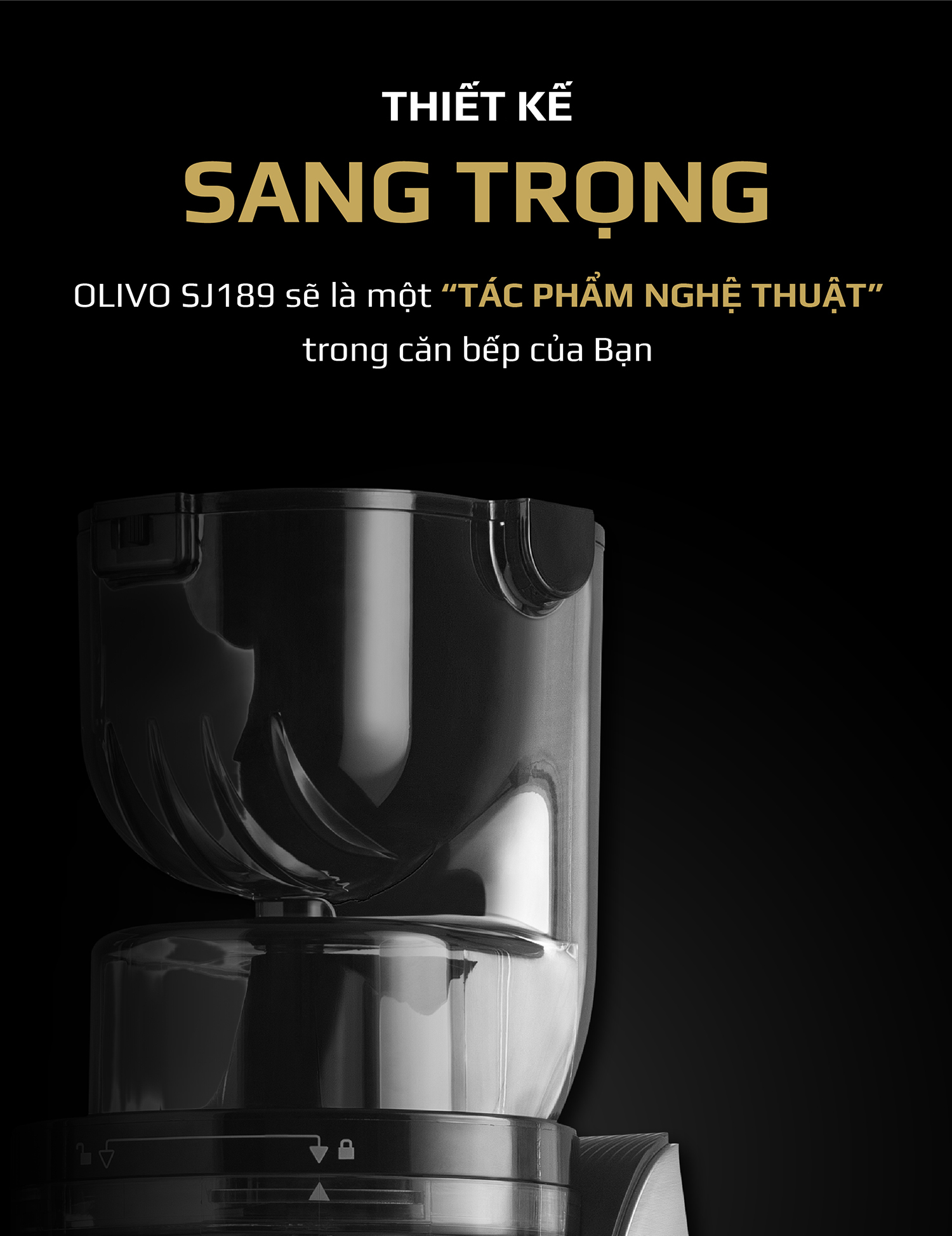 - Nếu như đã trót lỡ “mê” các dòng sản phẩm cao cấp của OLIVO, thì bạn không thể bỏ qua “TÁC PHẨM NGHỆ THUẬT” này được. Đó chính là máy ép hoa quả chậm CAO CẤP OLIVO SJ189 đến từ thương hiệu đồ gia dụng uy tín Olivo Electronics – Mỹ.
