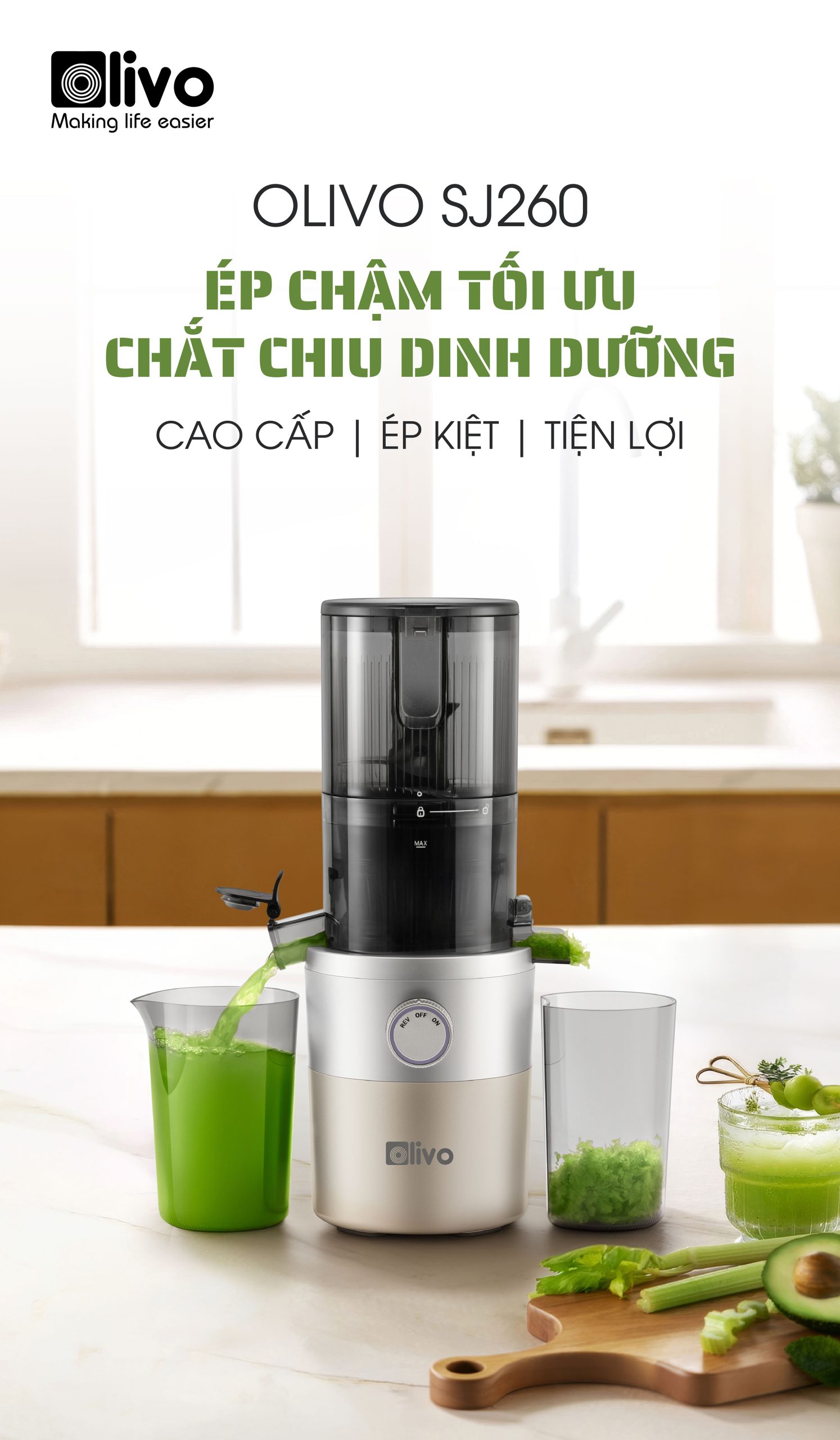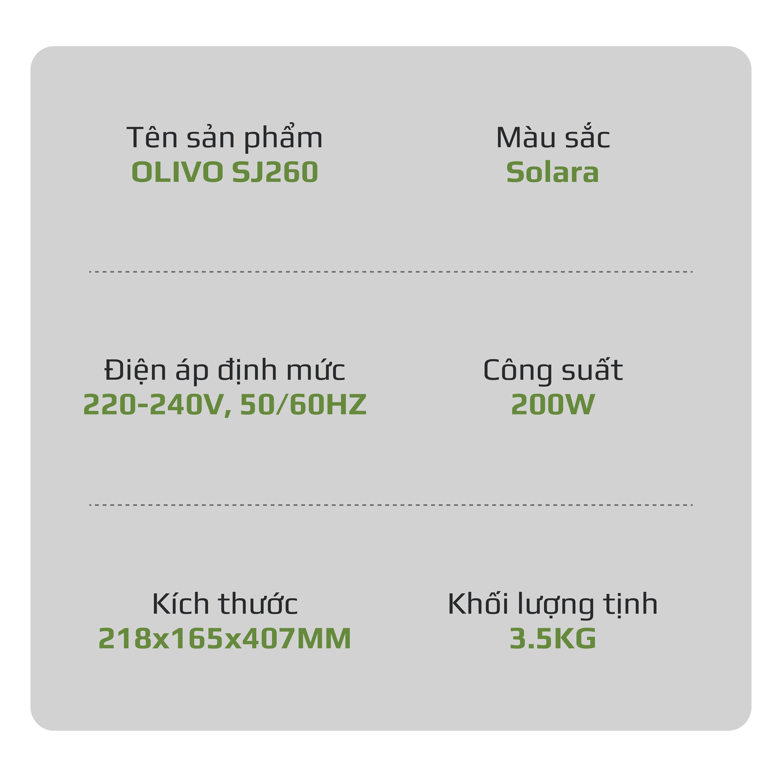 Olivo đã phát triển nhiều sản phẩm máy ép chậm và dần khẳng định vị thế trên thị trường gia dụng nhờ chất lượng bền bỉ cùng công nghệ cải tiến liên tục. Trải qua nhiều mã sản phẩm máy ép chậm trước, Olivo đã không ngừng nâng cấp trải nghiệm người dùng từ hiệu suất ép đến sự tiện lợi trong quá trình sử dụng. Kế thừa và phát triển từ những dòng máy trước, máy ép chậm OLIVO SJ260 ra đời như một bước cải tiến toàn diện, hội tụ những công nghệ ưu việt: ép kiệt, vận hành êm ái và tối ưu hơn trong từng chi tiết thiết kế. Đây không chỉ là một chiếc máy ép chậm, mà còn là giải pháp cung cấp vitamin mỗi ngày, chăm sóc sức khỏe, phù hợp với nhu cầu sử dụng của nhiều gia đình.