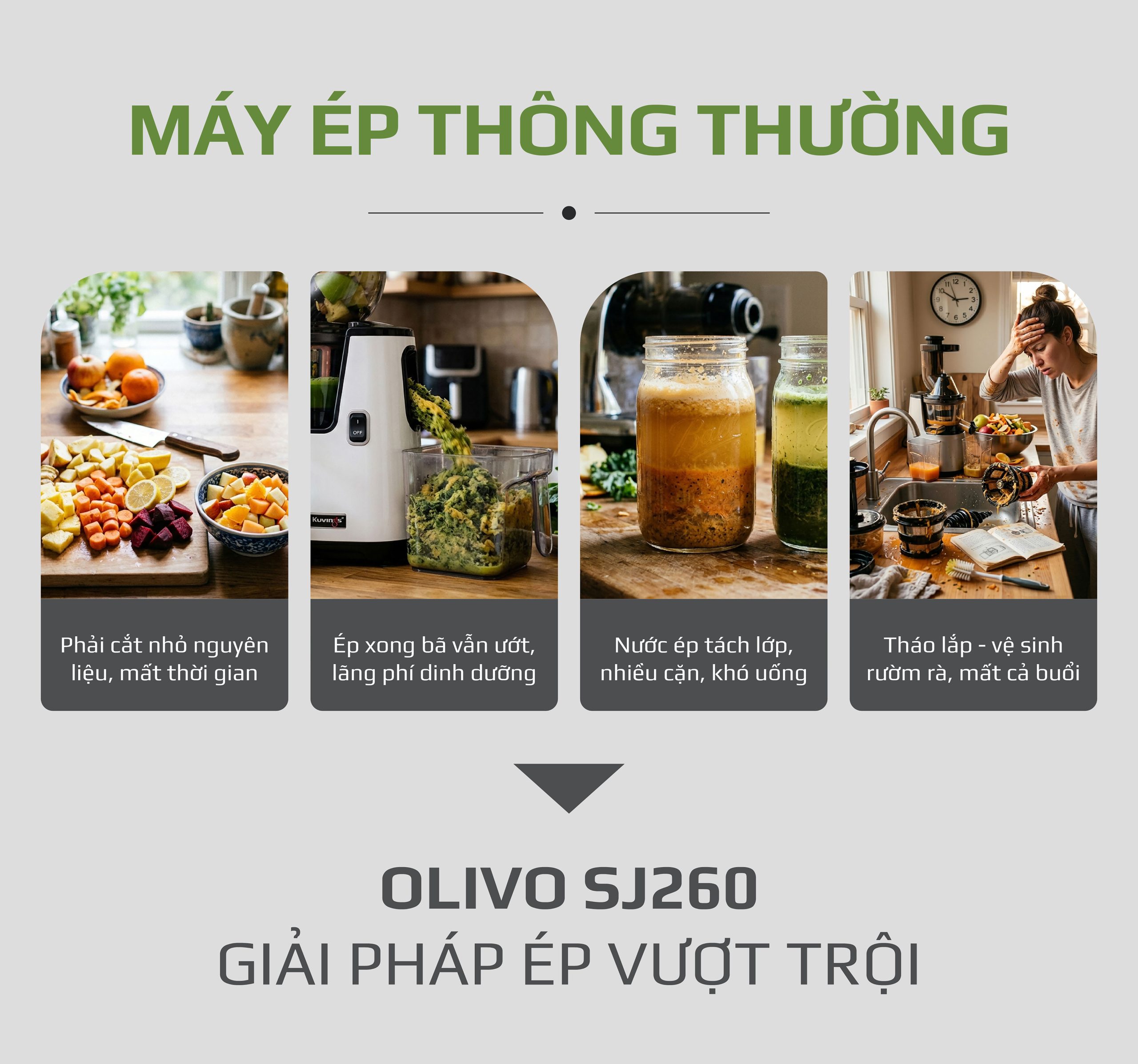 ƯU ĐIỂM VƯỢT TRỘI CỦA MÁY ÉP CHẬM OLIVO SJ260