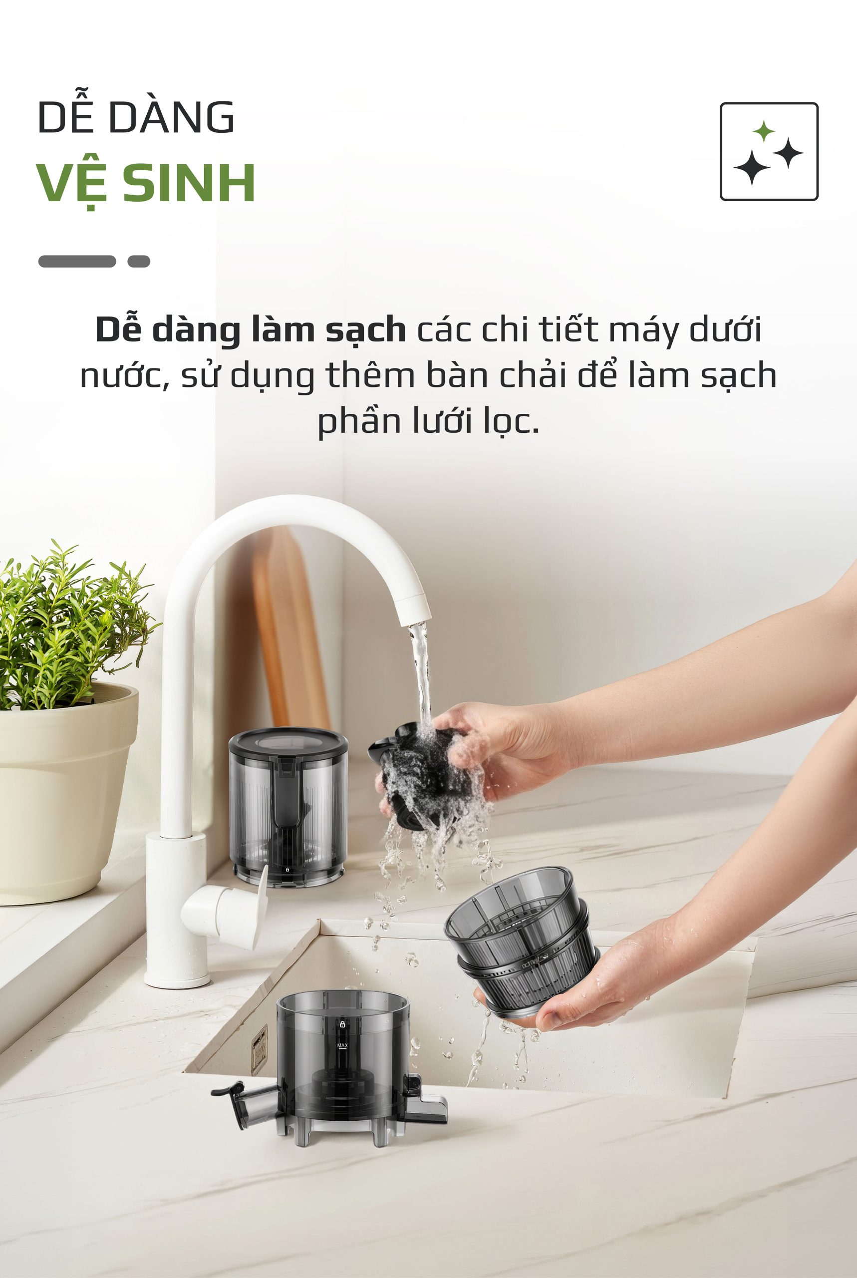 - Nhờ đó, bạn luôn giữ được máy sạch sẽ, đảm bảo an toàn vệ sinh thực phẩm và kéo dài tuổi thọ sản phẩm.