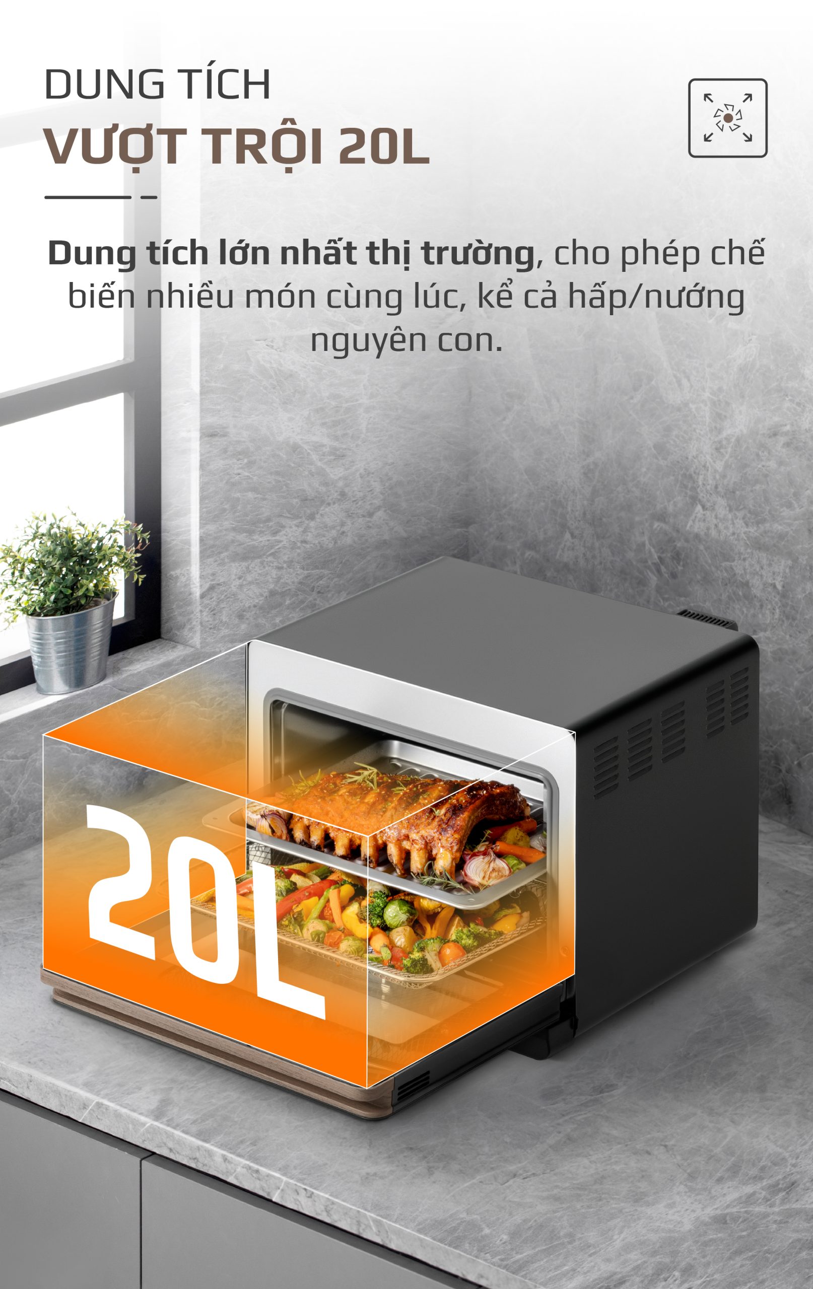 2. DUNG TÍCH 20 LÍT – KHÔNG GIAN RỘNG RÃI CHO MỌI BỮA ĂN