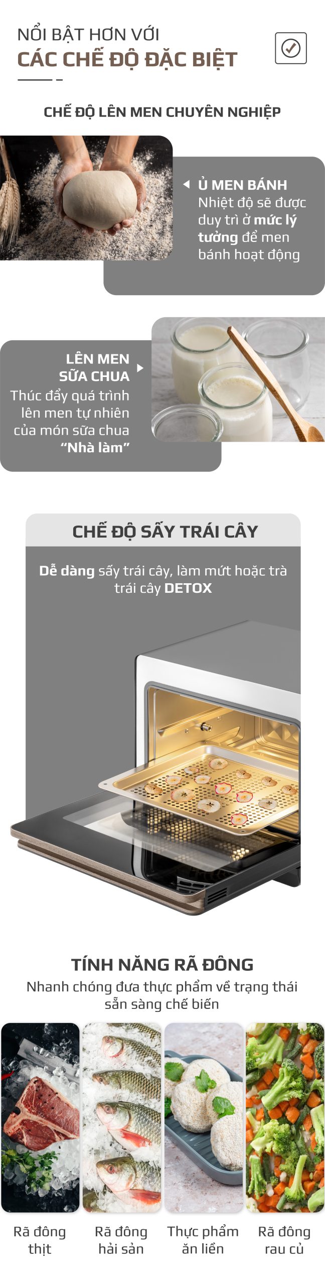 - An toàn vệ sinh: Hơi nước nano có khả năng tiêu diệt vi khuẩn, giúp thực phẩm luôn sạch sẽ và an toàn.