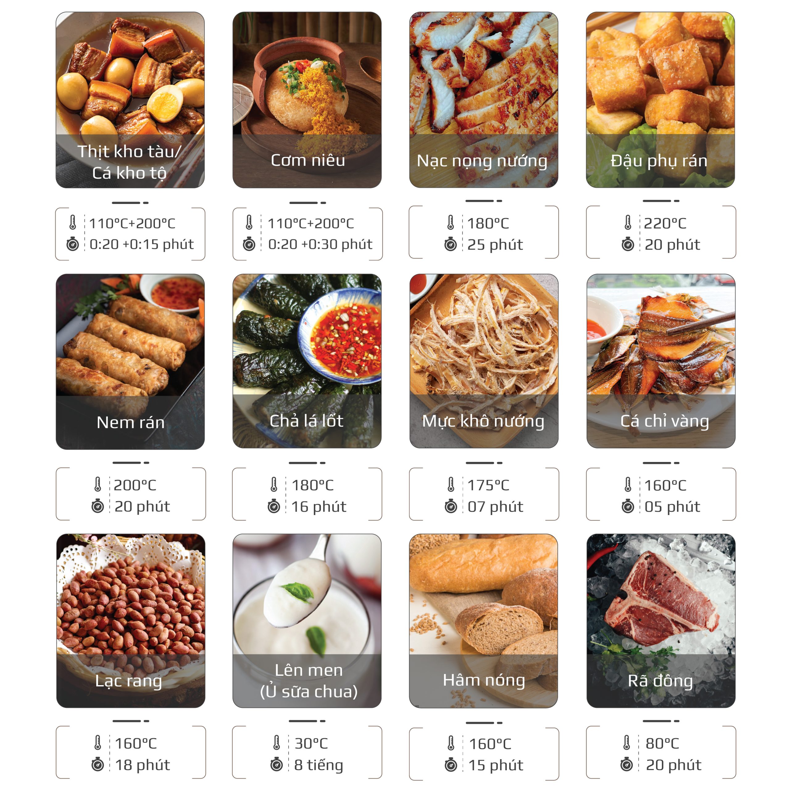 - Tiết kiệm thời gian: Các chế độ đã được cài đặt sẵn thời gian và nhiệt độ phù hợp cho từng loại thực phẩm, giúp bạn tiết kiệm thời gian chuẩn bị và nấu nướng. Bạn chỉ cần chọn chế độ và nhấn nút khởi động.