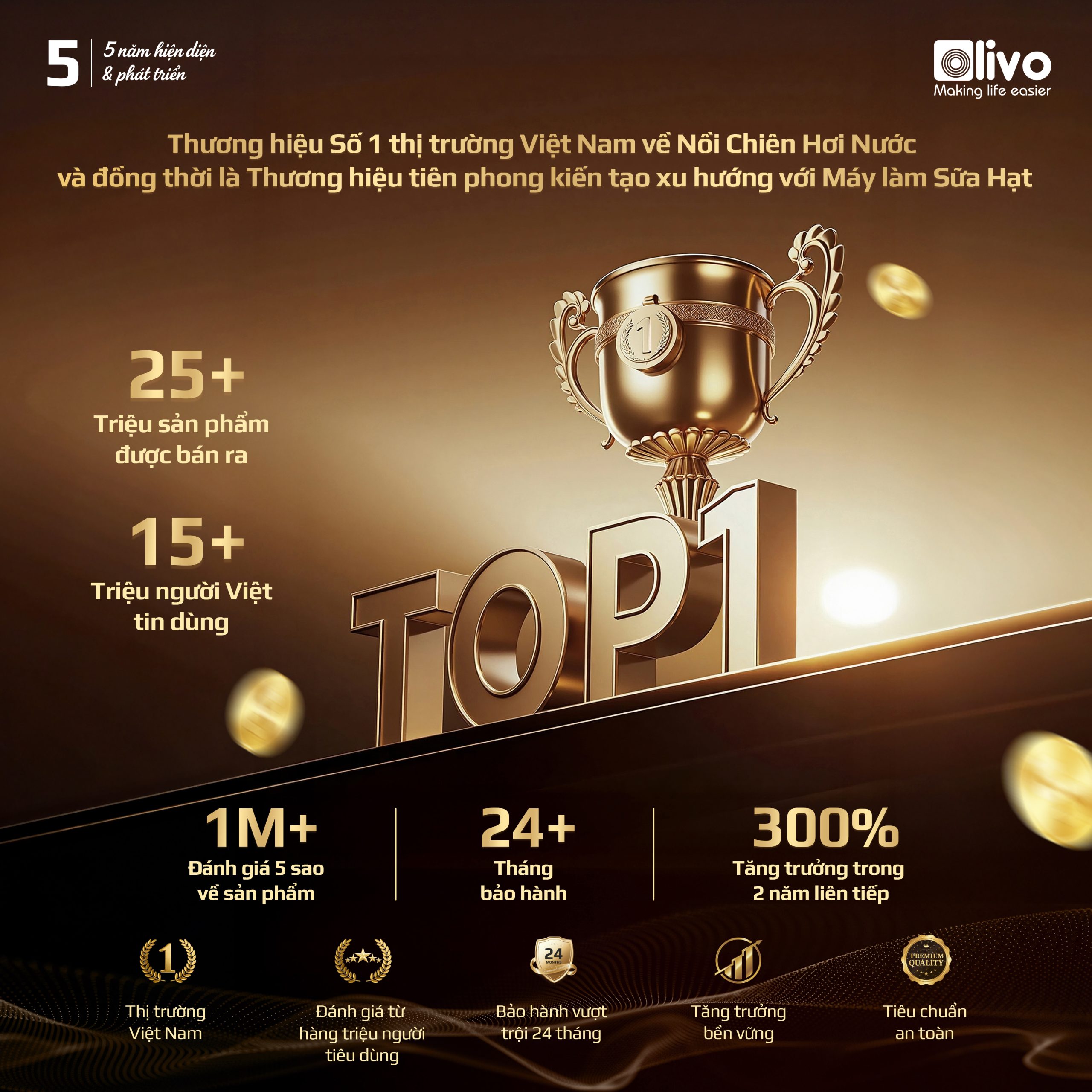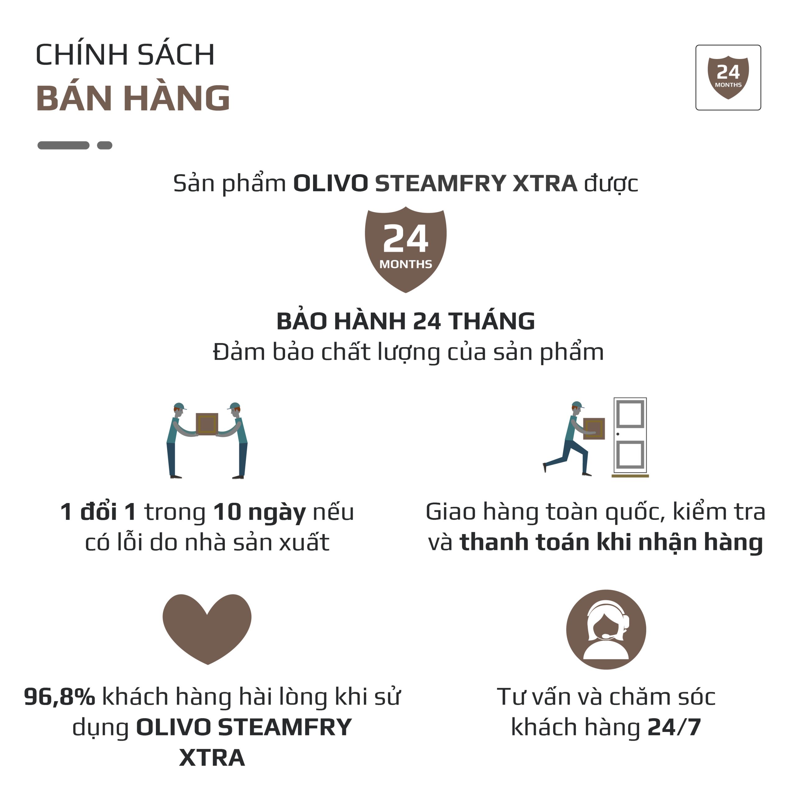 - An toàn: Đặt sức khoẻ của khách hàng làm tiêu chí hàng đầu, toàn bộ khoang nồi và phụ kiện của Nồi chiên hấp OLIVO SteamFry Xtra được làm từ INOX 304 cao cấp – chất liệu được sử dụng trong y tế và đạt chứng nhận an toàn khi tiếp xúc với thực phẩm ở nhiệt độ cao.