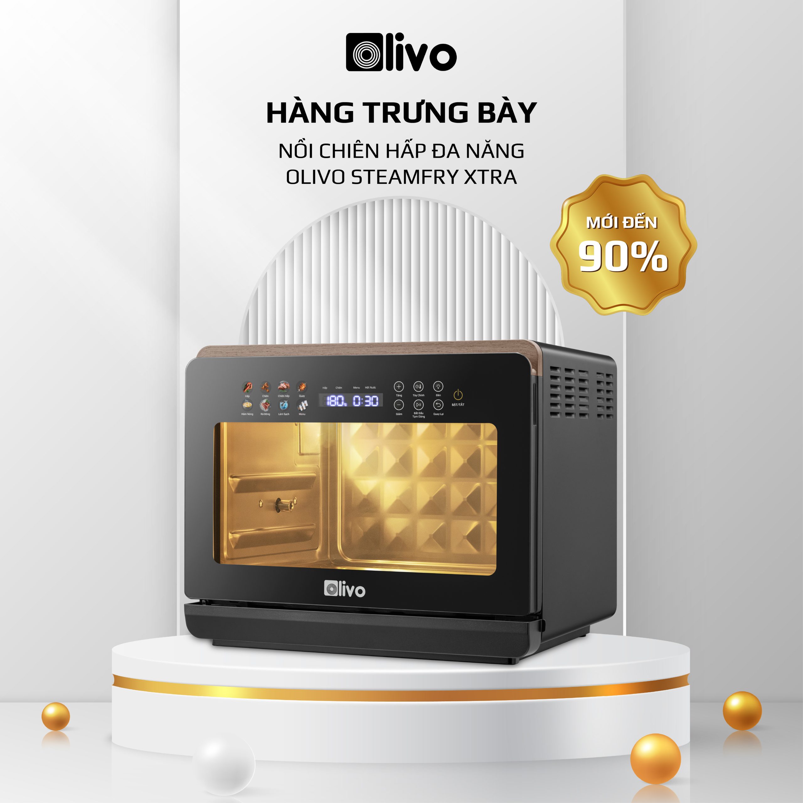 Nồi Chiên Hấp Đa Năng OLIVO SteamFry Xtra – Phiên Bản Cao Cấp, Bảng Điều Khiển OLED, Dung tích vượt trội 20L, Hấp Nano Steam/Chiên Eco Fry thế hệ thứ 2, 70 Chế Độ Cài Sẵn, Vệ Sinh Dễ Dàng – Hàng Trưng Bày