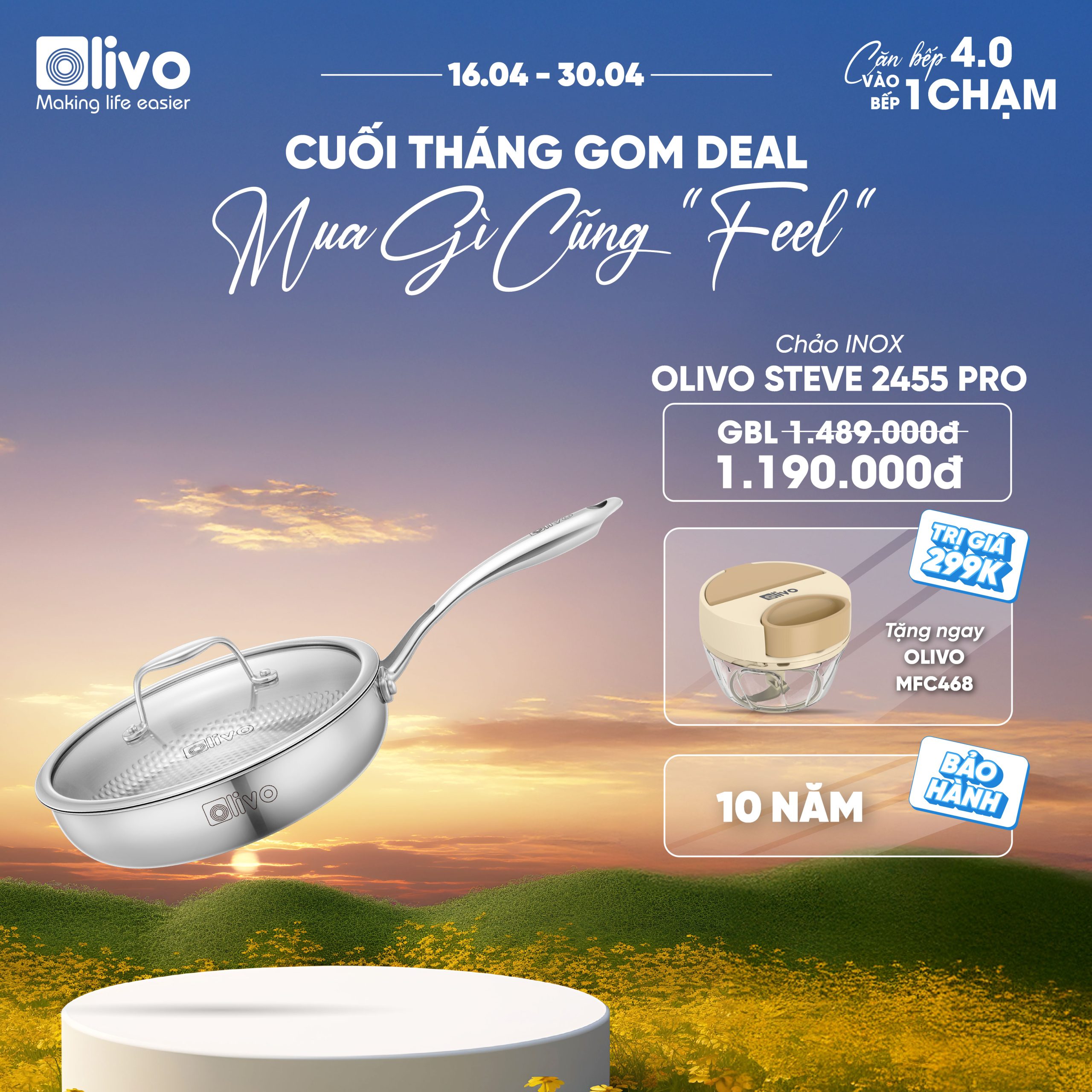 ƯU ĐIỂM VƯỢT TRỘI CỦA SẢN PHẨM CHẢO INOX VÂN TRÒN OLIVO STEVE 2455 PRO